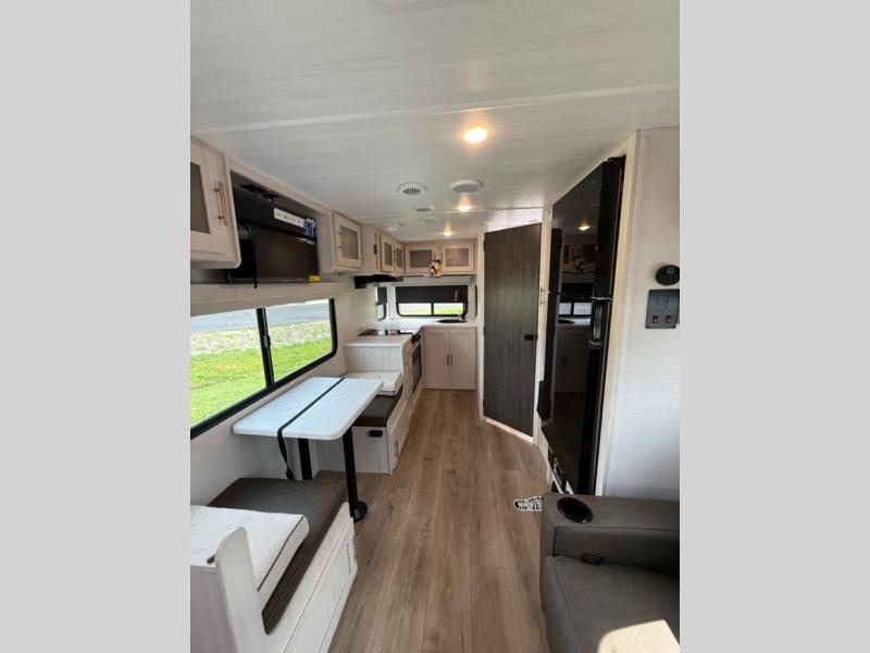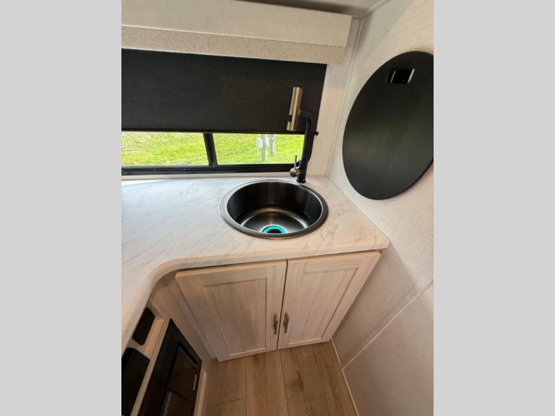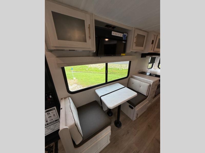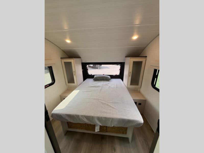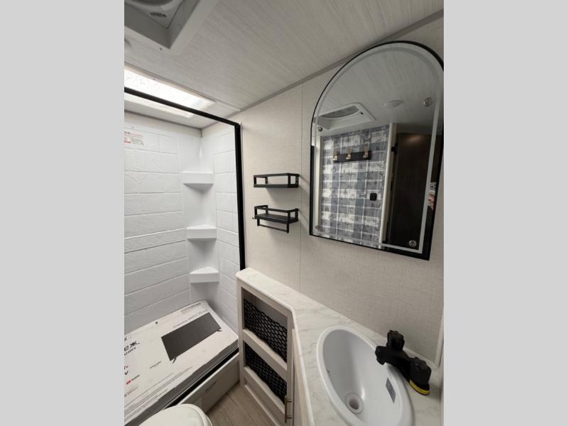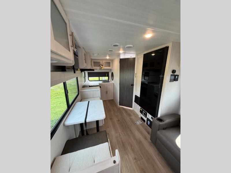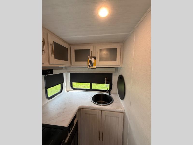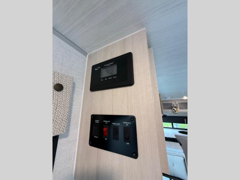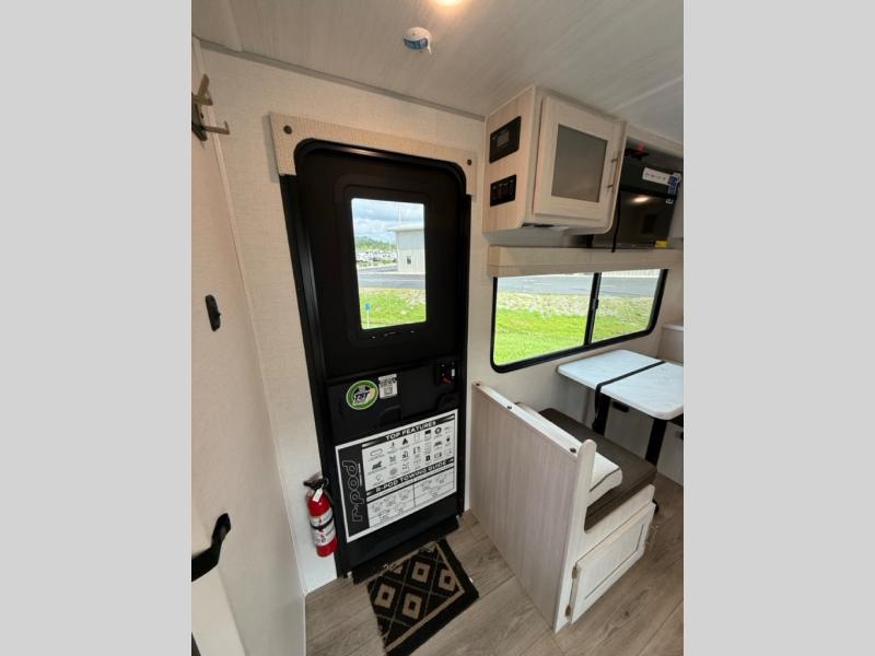 With any R-Pod travel trailer by Forest River, you will enjoy affordable luxury at the lowest tow weight in its class! There is a sealed underbelly with forced heat, a curved dual-pane acrylic front window with a bug screen and night shade, plus a large roof mounted solar panel for off-grid capabilities. The 15K A/C unit will keep you comfortable during the summer camping months, and the tankless water heater will provide endless hot showers after hiking, biking, swimming and more! Each model also includes a black glass friction hinge entrance door, roof ladder prep, exterior motion lighting, plus a hot and cold exterior spray port to wash off sand from the beach. Inside, you'll enjoy seamless Surf-X kitchen countertops, blackout roller shades, and a central vacuum system for hassle-free cleaning!