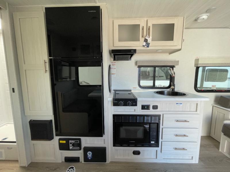 With any R-Pod travel trailer by Forest River, you will enjoy affordable luxury at the lowest tow weight in its class! There is a sealed underbelly with forced heat, a curved dual-pane acrylic front window with a bug screen and night shade, plus a large roof mounted solar panel for off-grid capabilities. The 15K A/C unit will keep you comfortable during the summer camping months, and the tankless water heater will provide endless hot showers after hiking, biking, swimming and more! Each model also includes a black glass friction hinge entrance door, roof ladder prep, exterior motion lighting, plus a hot and cold exterior spray port to wash off sand from the beach. Inside, you'll enjoy seamless Surf-X kitchen countertops, blackout roller shades, and a central vacuum system for hassle-free cleaning!