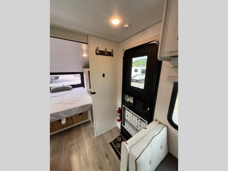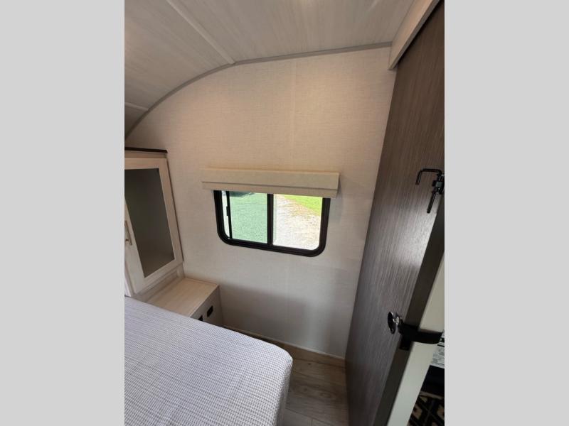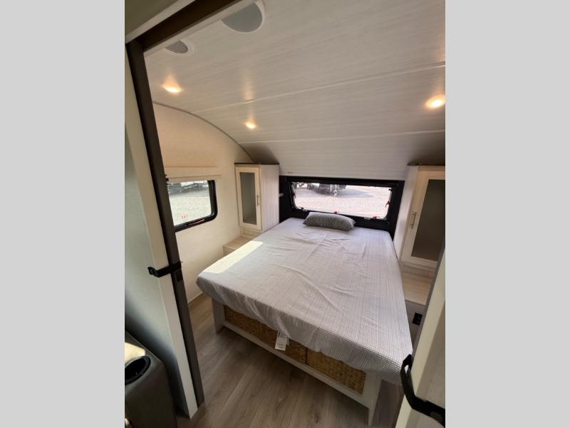 With any R-Pod travel trailer by Forest River, you will enjoy affordable luxury at the lowest tow weight in its class! There is a sealed underbelly with forced heat, a curved dual-pane acrylic front window with a bug screen and night shade, plus a large roof mounted solar panel for off-grid capabilities. The 15K A/C unit will keep you comfortable during the summer camping months, and the tankless water heater will provide endless hot showers after hiking, biking, swimming and more! Each model also includes a black glass friction hinge entrance door, roof ladder prep, exterior motion lighting, plus a hot and cold exterior spray port to wash off sand from the beach. Inside, you'll enjoy seamless Surf-X kitchen countertops, blackout roller shades, and a central vacuum system for hassle-free cleaning!