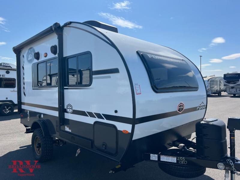 With any R-Pod travel trailer by Forest River, you will enjoy affordable luxury at the lowest tow weight in its class! There is a sealed underbelly with forced heat, a curved dual-pane acrylic front window with a bug screen and night shade, plus a large roof mounted solar panel for off-grid capabilities. The 15K A/C unit will keep you comfortable during the summer camping months, and the tankless water heater will provide endless hot showers after hiking, biking, swimming and more! Each model also includes a black glass friction hinge entrance door, roof ladder prep, exterior motion lighting, plus a hot and cold exterior spray port to wash off sand from the beach. Inside, you'll enjoy seamless Surf-X kitchen countertops, blackout roller shades, and a central vacuum system for hassle-free cleaning!
