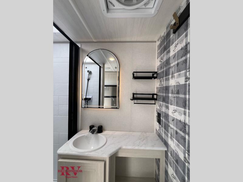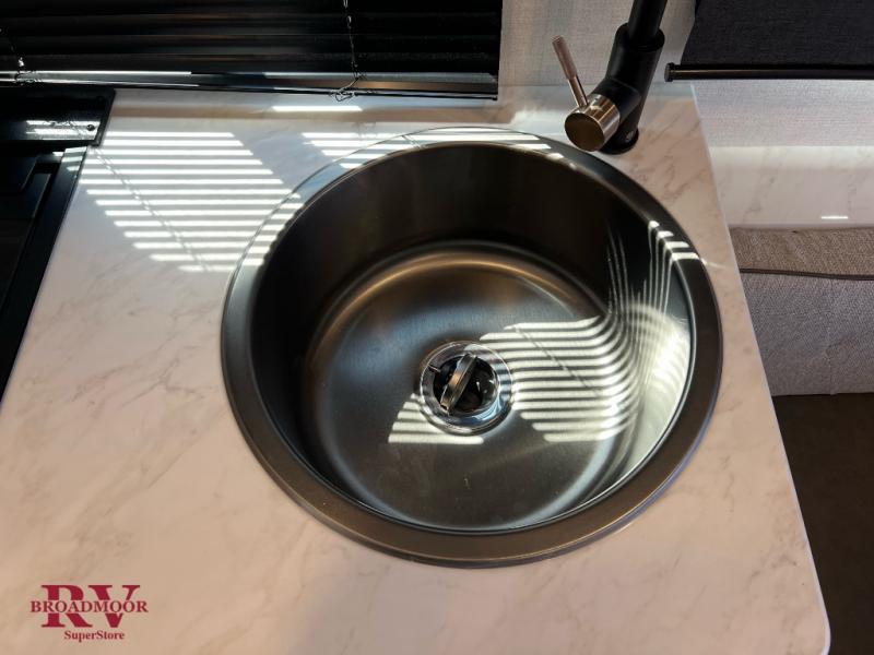 Weekends at the lake just got sweeter in this cozy travel trailer. You can prepare your meals each day on the two burner cooktop, or in the convection microwave. There is a sofa to relax on with a good book, plus a booth dinette up front that features a Murphy bed you can fold down at night. This model also includes a 12V black glass refrigerator to keep your perishables fresh, and a pantry to store snacks and dry goods. The Hood River Edition included with this model includes Mud Legend all-terrain tires with TPMS, a MaxxAir vent cover, and 12V tank heaters!