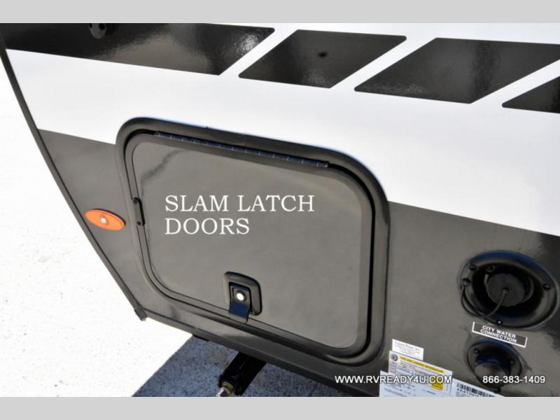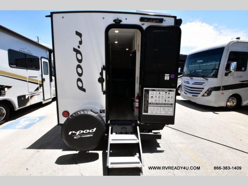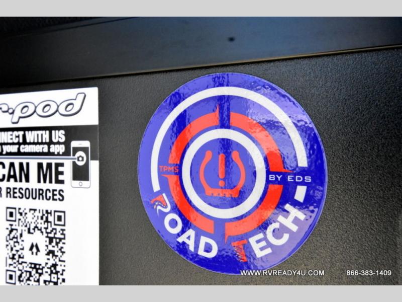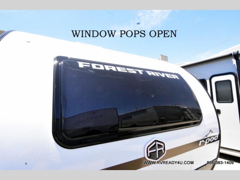 With any R-Pod travel trailer by Forest River, you will enjoy affordable luxury at the lowest tow weight in its class! There is a sealed underbelly with forced heat, a curved dual-pane acrylic front window with a bug screen and night shade, plus a large roof mounted solar panel for off-grid capabilities. The 15K A/C unit will keep you comfortable during the summer camping months, and the tankless water heater will provide endless hot showers after hiking, biking, swimming and more! Each model also includes a black glass friction hinge entrance door, roof ladder prep, exterior motion lighting, plus a hot and cold exterior spray port to wash off sand from the beach. Inside, you'll enjoy seamless Surf-X kitchen countertops, blackout roller shades, and a central vacuum system for hassle-free cleaning!