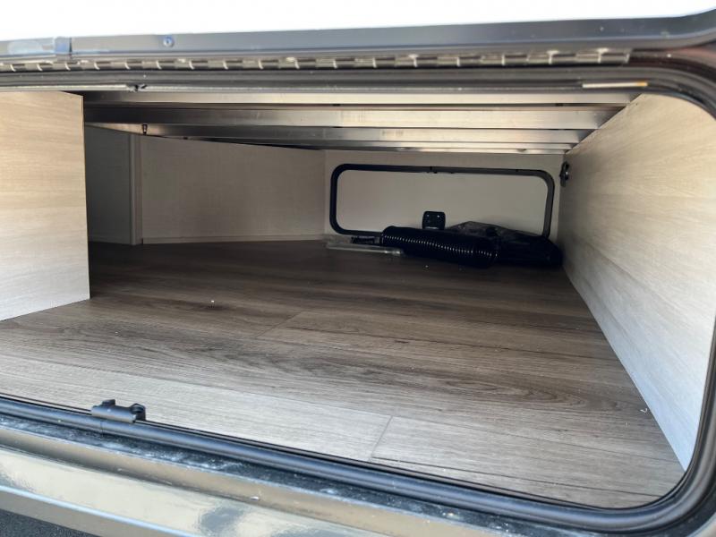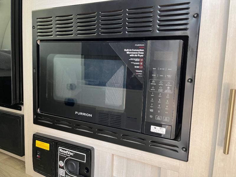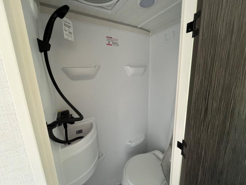 This travel trailer is perfect for weekend trips or month-long vacations to enjoy the great outdoors with conveniences of home. You can easily sleep three people with a rear queen bed and a front dinette folded down for the little ones. This unit also includes a two-burner cooktop and convection microwave to make meals inside. You will also find a convenient wet bath where you can easily get ready for bed each night, and the night light will help you not stumble over the sleeping dog!