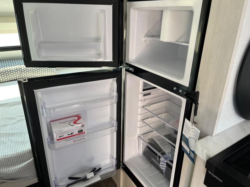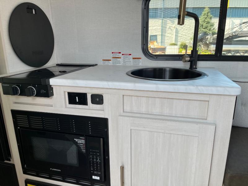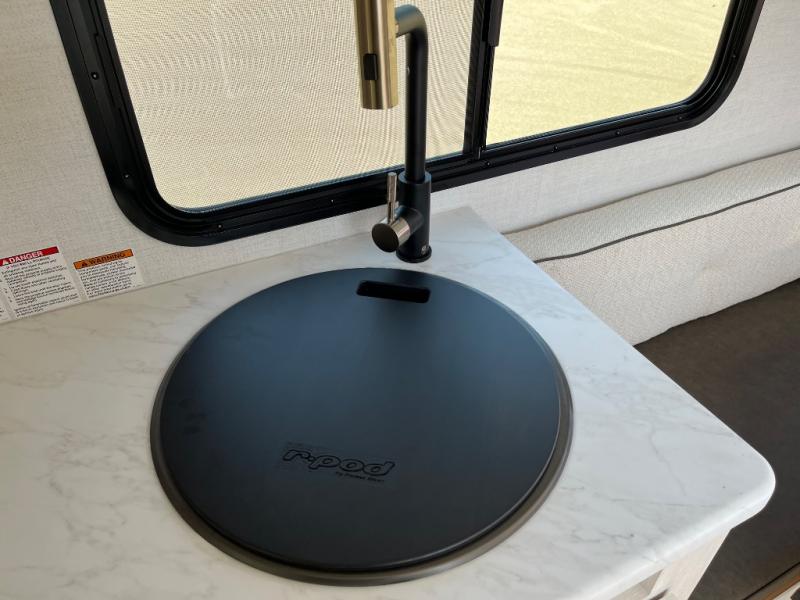 With any R-Pod travel trailer by Forest River, you will enjoy affordable luxury at the lowest tow weight in its class! There is a sealed underbelly with forced heat, a curved dual-pane acrylic front window with a bug screen and night shade, plus a large roof mounted solar panel for off-grid capabilities. The 15K A/C unit will keep you comfortable during the summer camping months, and the tankless water heater will provide endless hot showers after hiking, biking, swimming and more! Each model also includes a black glass friction hinge entrance door, roof ladder prep, exterior motion lighting, plus a hot and cold exterior spray port to wash off sand from the beach. Inside, you'll enjoy seamless Surf-X kitchen countertops, blackout roller shades, and a central vacuum system for hassle-free cleaning!