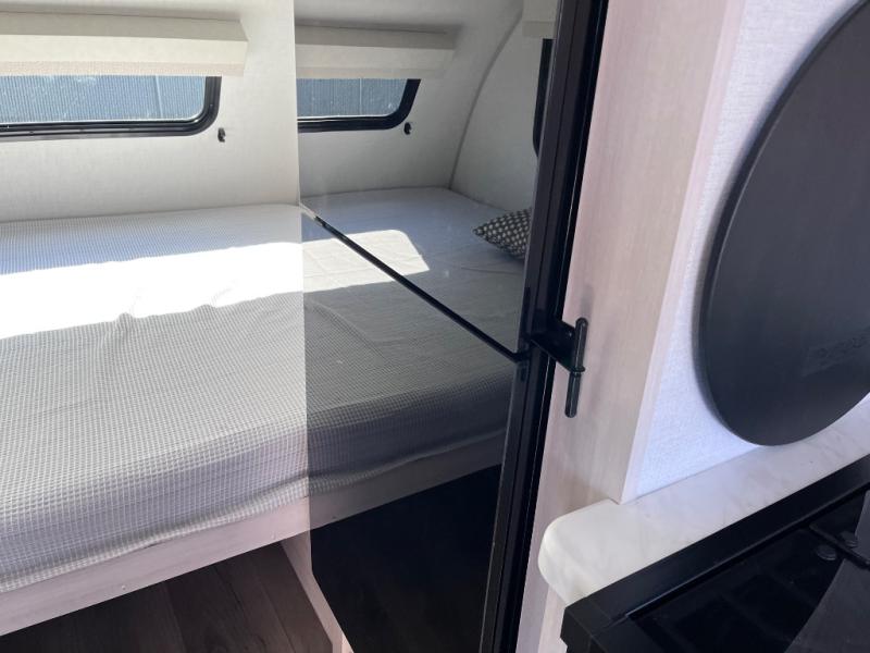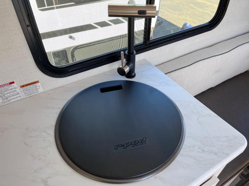 With any R-Pod travel trailer by Forest River, you will enjoy affordable luxury at the lowest tow weight in its class! There is a sealed underbelly with forced heat, a curved dual-pane acrylic front window with a bug screen and night shade, plus a large roof mounted solar panel for off-grid capabilities. The 15K A/C unit will keep you comfortable during the summer camping months, and the tankless water heater will provide endless hot showers after hiking, biking, swimming and more! Each model also includes a black glass friction hinge entrance door, roof ladder prep, exterior motion lighting, plus a hot and cold exterior spray port to wash off sand from the beach. Inside, you'll enjoy seamless Surf-X kitchen countertops, blackout roller shades, and a central vacuum system for hassle-free cleaning!