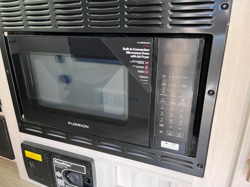 This travel trailer is perfect for weekend trips or month-long vacations to enjoy the great outdoors with conveniences of home. You can easily sleep three people with a rear queen bed and a front dinette folded down for the little ones. This unit also includes a two-burner cooktop and convection microwave to make meals inside. You will also find a convenient wet bath where you can easily get ready for bed each night, and the night light will help you not stumble over the sleeping dog!
