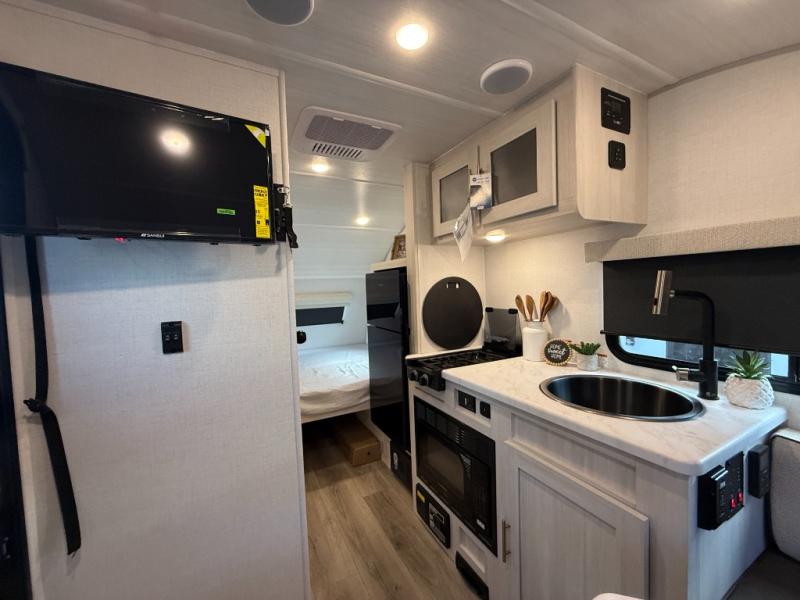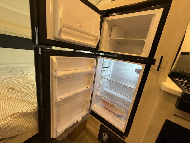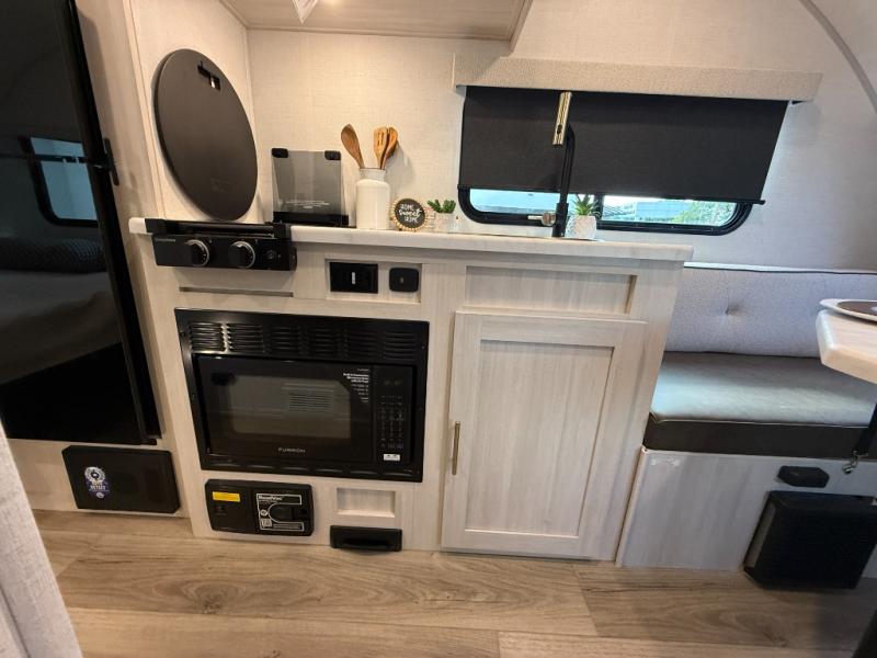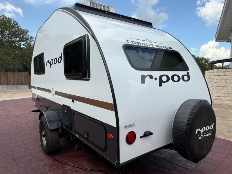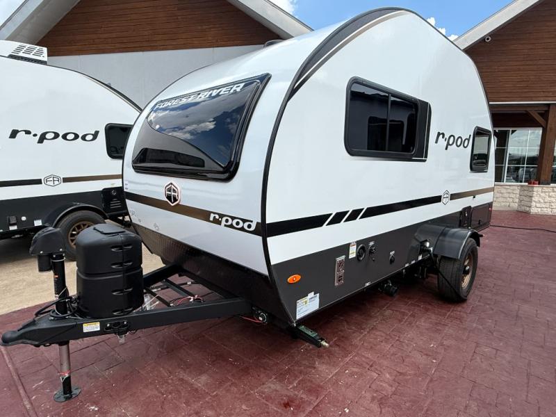 With any R-Pod travel trailer by Forest River, you will enjoy affordable luxury at the lowest tow weight in its class! There is a sealed underbelly with forced heat, a curved dual-pane acrylic front window with a bug screen and night shade, plus a large roof mounted solar panel for off-grid capabilities. The 15K A/C unit will keep you comfortable during the summer camping months, and the tankless water heater will provide endless hot showers after hiking, biking, swimming and more! Each model also includes a black glass friction hinge entrance door, roof ladder prep, exterior motion lighting, plus a hot and cold exterior spray port to wash off sand from the beach. Inside, you'll enjoy seamless Surf-X kitchen countertops, blackout roller shades, and a central vacuum system for hassle-free cleaning!