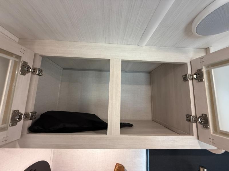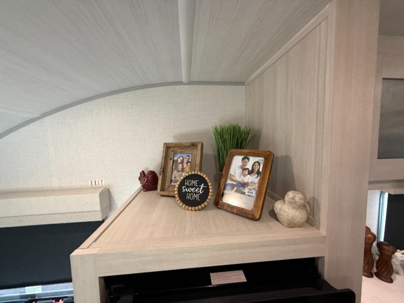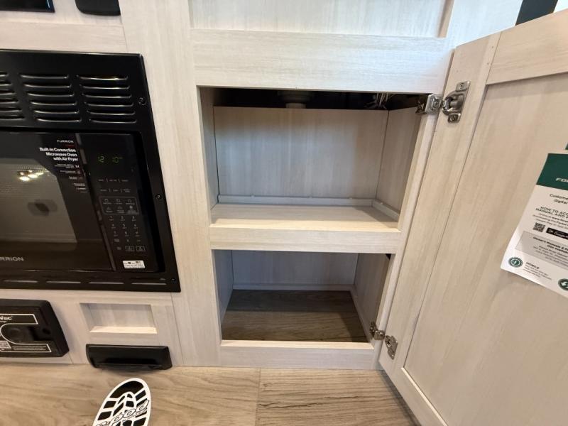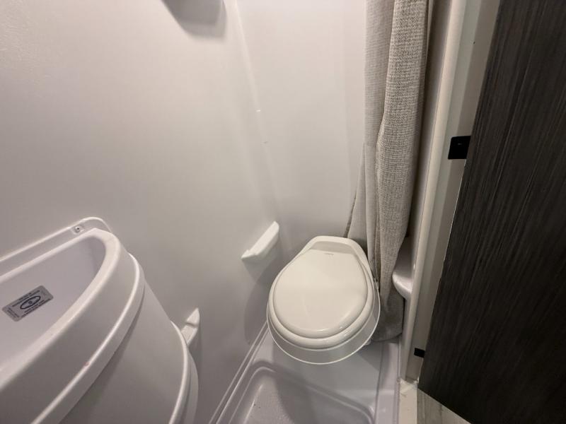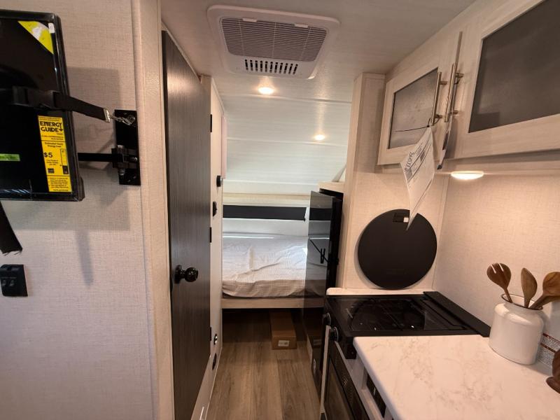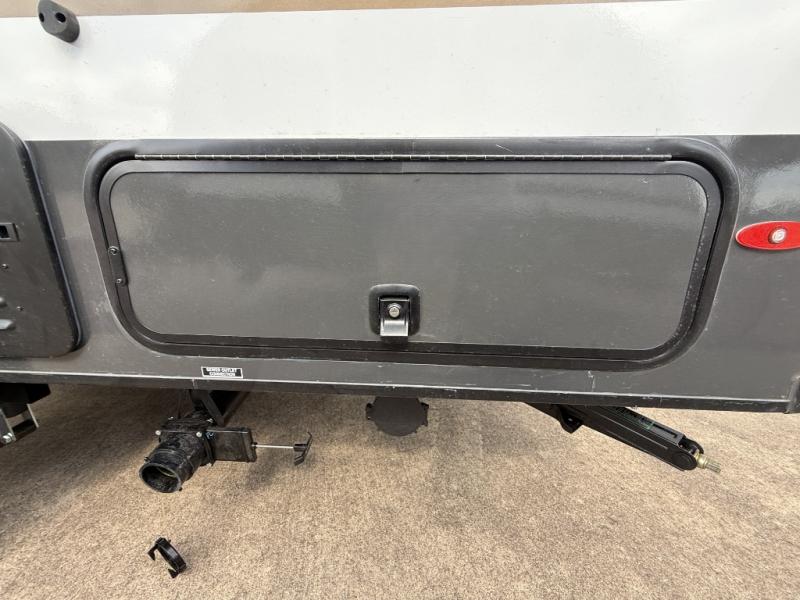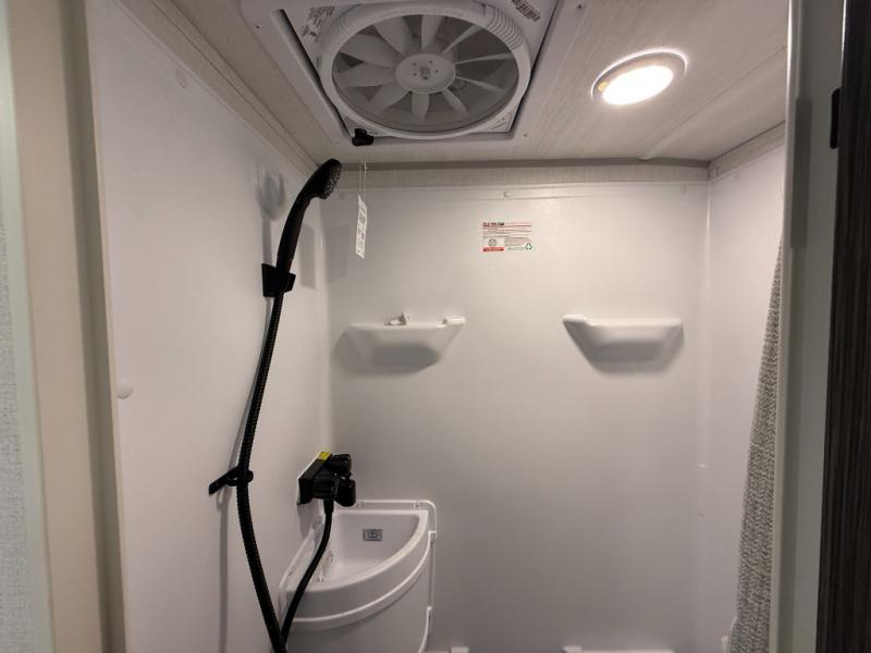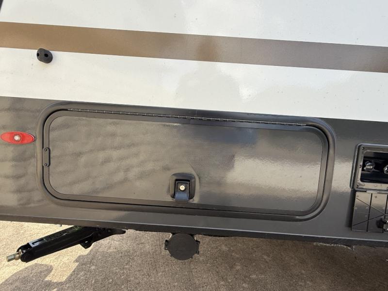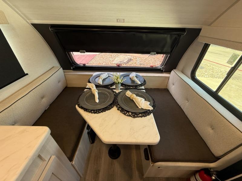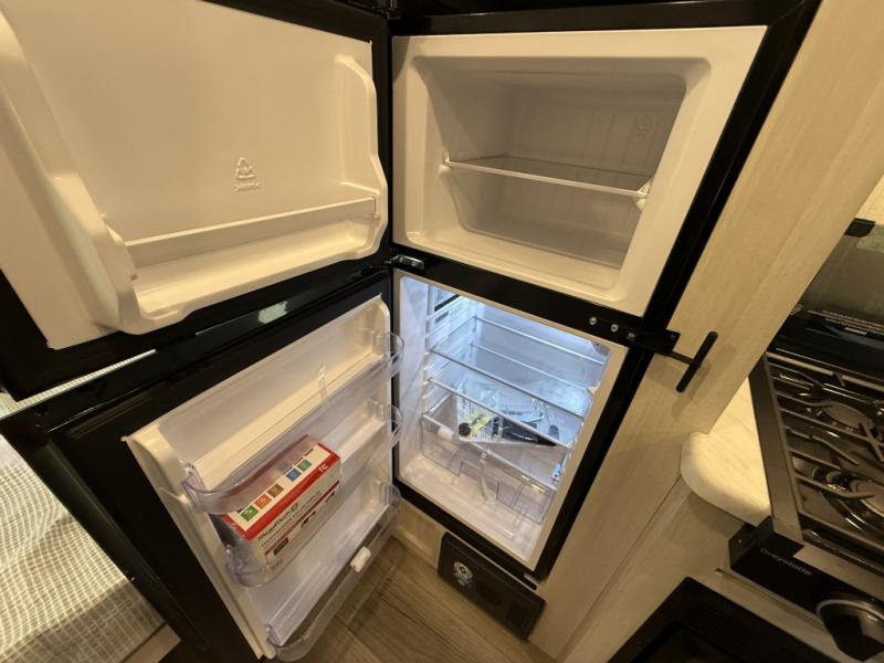 This travel trailer is perfect for weekend trips or month-long vacations to enjoy the great outdoors with conveniences of home. You can easily sleep three people with a rear queen bed and a front dinette folded down for the little ones. This unit also includes a two-burner cooktop and convection microwave to make meals inside. You will also find a convenient wet bath where you can easily get ready for bed each night, and the night light will help you not stumble over the sleeping dog!