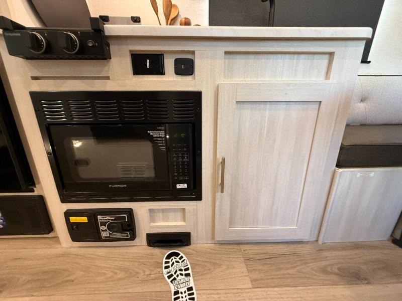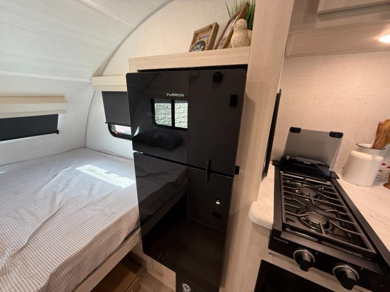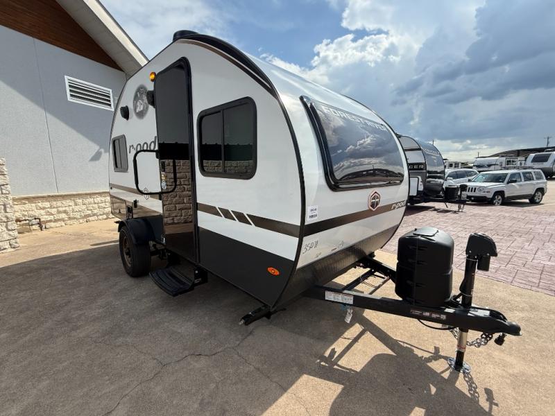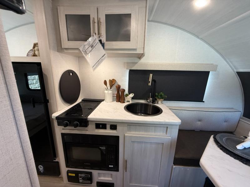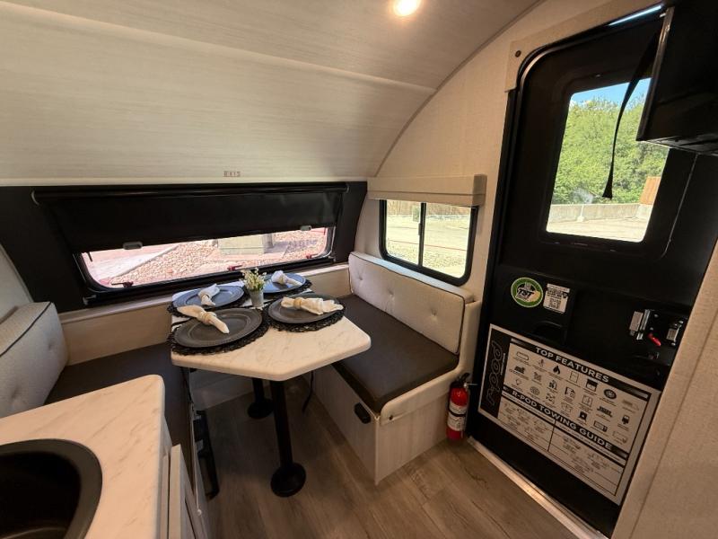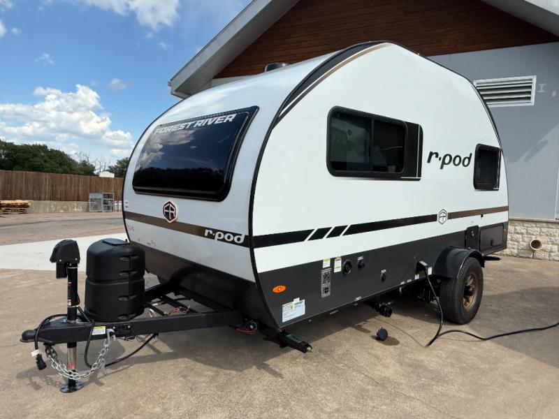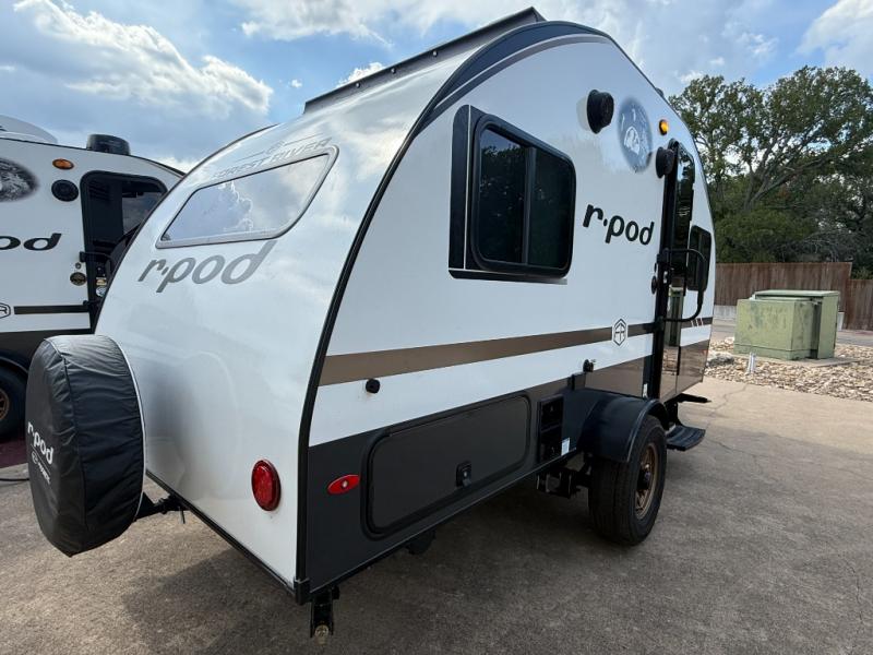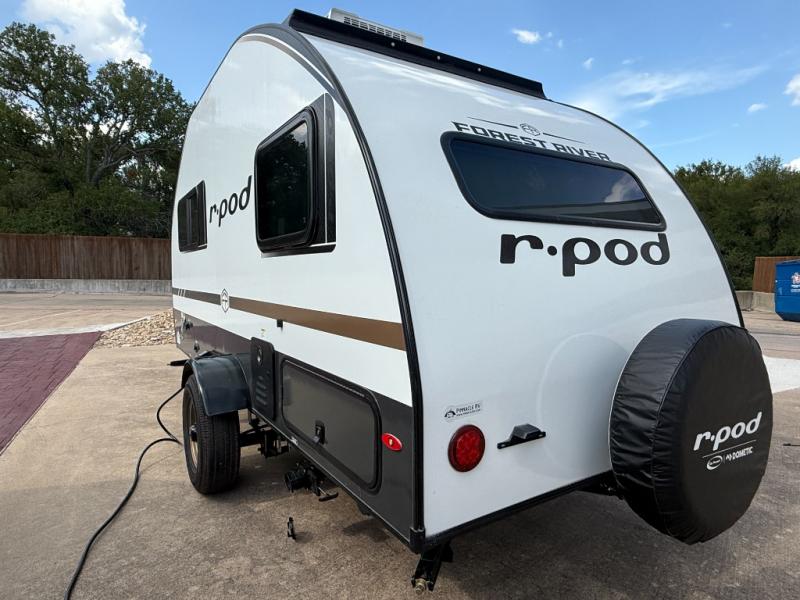 With any R-Pod travel trailer by Forest River, you will enjoy affordable luxury at the lowest tow weight in its class! There is a sealed underbelly with forced heat, a curved dual-pane acrylic front window with a bug screen and night shade, plus a large roof mounted solar panel for off-grid capabilities. The 15K A/C unit will keep you comfortable during the summer camping months, and the tankless water heater will provide endless hot showers after hiking, biking, swimming and more! Each model also includes a black glass friction hinge entrance door, roof ladder prep, exterior motion lighting, plus a hot and cold exterior spray port to wash off sand from the beach. Inside, you'll enjoy seamless Surf-X kitchen countertops, blackout roller shades, and a central vacuum system for hassle-free cleaning!