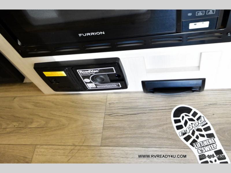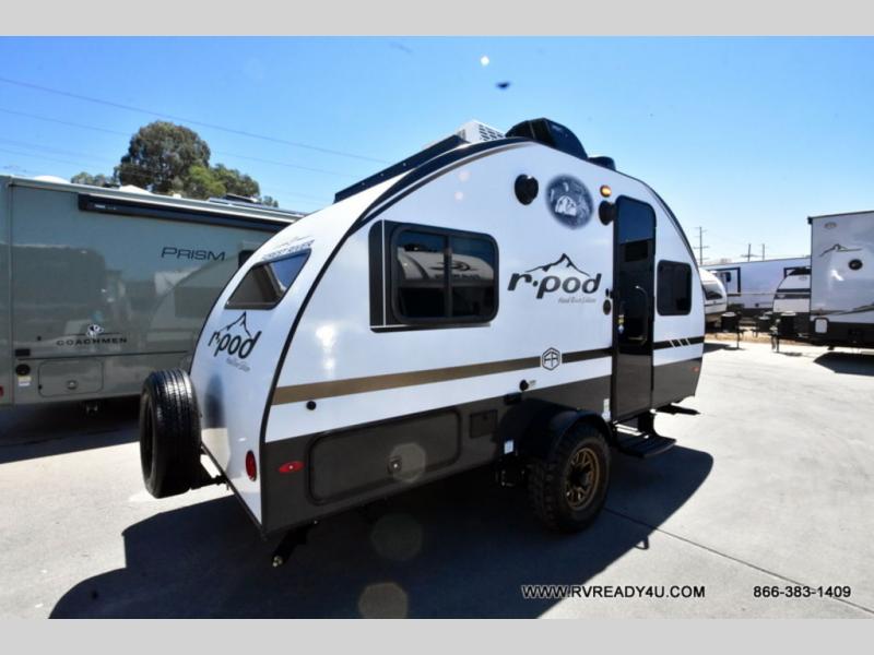 With any R-Pod travel trailer by Forest River, you will enjoy affordable luxury at the lowest tow weight in its class! There is a sealed underbelly with forced heat, a curved dual-pane acrylic front window with a bug screen and night shade, plus a large roof mounted solar panel for off-grid capabilities. The 15K A/C unit will keep you comfortable during the summer camping months, and the tankless water heater will provide endless hot showers after hiking, biking, swimming and more! Each model also includes a black glass friction hinge entrance door, roof ladder prep, exterior motion lighting, plus a hot and cold exterior spray port to wash off sand from the beach. Inside, you'll enjoy seamless Surf-X kitchen countertops, blackout roller shades, and a central vacuum system for hassle-free cleaning!