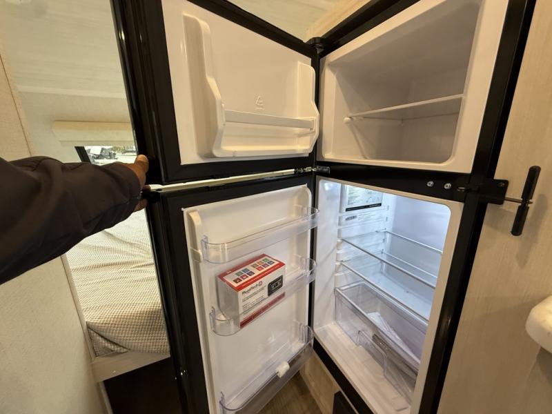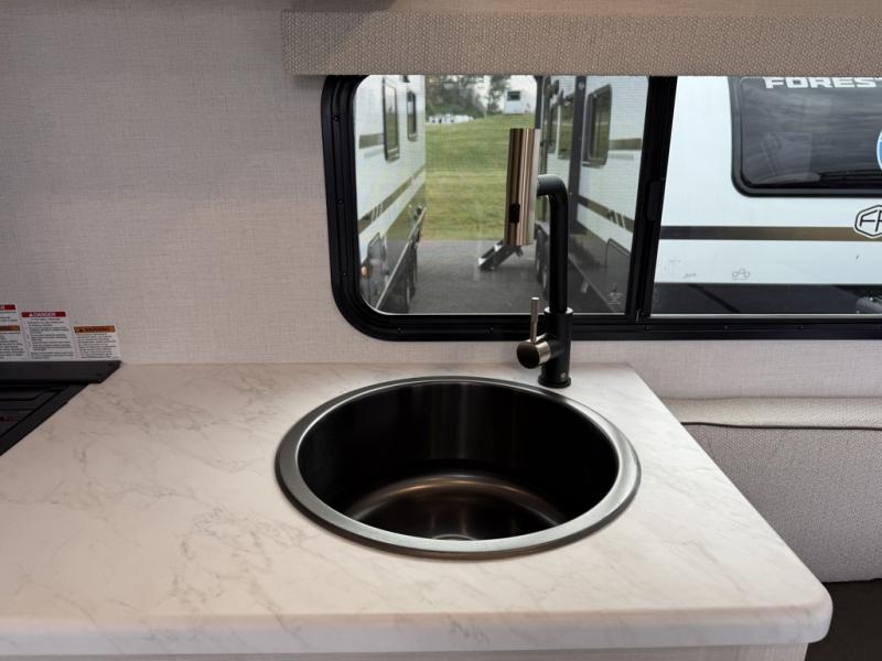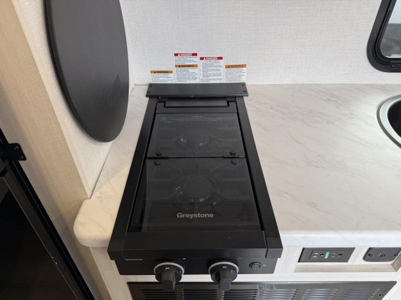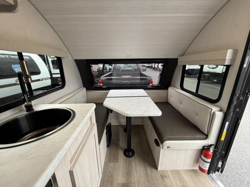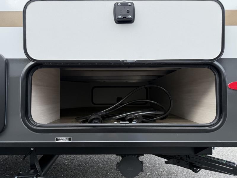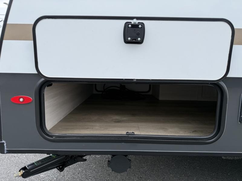 With any R-Pod travel trailer by Forest River, you will enjoy affordable luxury at the lowest tow weight in its class! There is a sealed underbelly with forced heat, a curved dual-pane acrylic front window with a bug screen and night shade, plus a large roof mounted solar panel for off-grid capabilities. The 15K A/C unit will keep you comfortable during the summer camping months, and the tankless water heater will provide endless hot showers after hiking, biking, swimming and more! Each model also includes a black glass friction hinge entrance door, roof ladder prep, exterior motion lighting, plus a hot and cold exterior spray port to wash off sand from the beach. Inside, you'll enjoy seamless Surf-X kitchen countertops, blackout roller shades, and a central vacuum system for hassle-free cleaning!