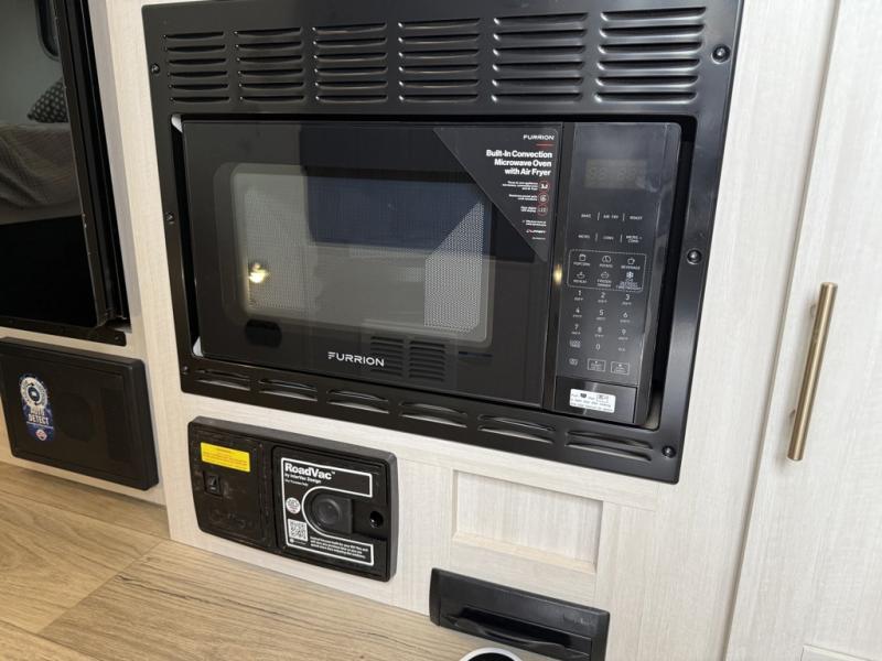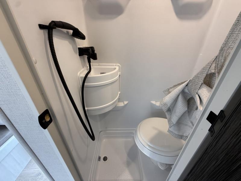 This travel trailer is perfect for weekend trips or month-long vacations to enjoy the great outdoors with conveniences of home. You can easily sleep three people with a rear queen bed and a front dinette folded down for the little ones. This unit also includes a two-burner cooktop and convection microwave to make meals inside. You will also find a convenient wet bath where you can easily get ready for bed each night, and the night light will help you not stumble over the sleeping dog!