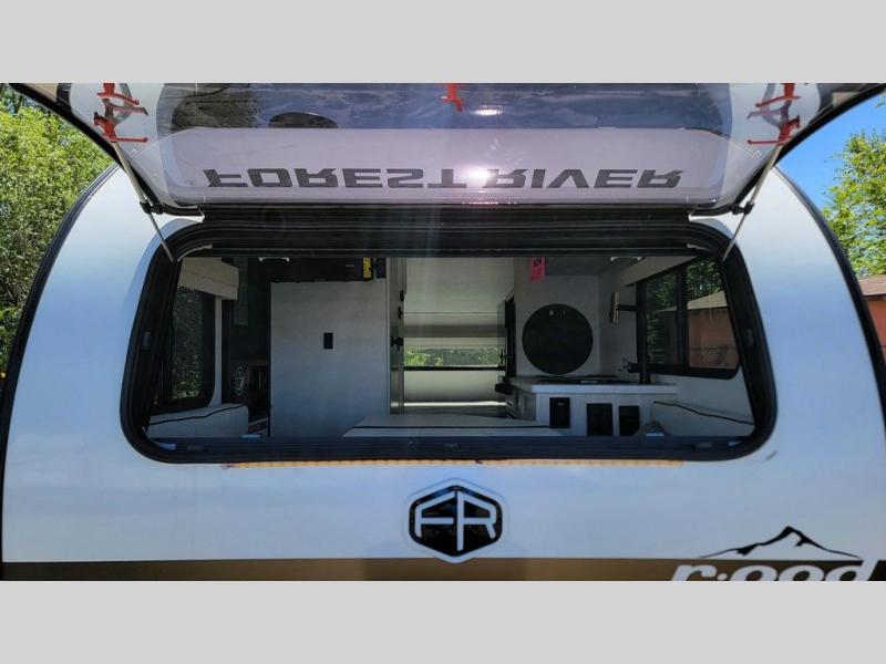 This travel trailer by Forest River is perfect for your weekend getaways. You can easily sleep three people with a rear queen bed and the front dinette folded down for the little ones. This unit also includes a 12V TV to enjoy while you're stuck inside on a rainy day. You will also find a convenient wet bath where you can easily get ready for your day of fun and adventure! This model also includes the Hood River Edition that comes with Mud Legend all terrain tires with TPMS, a MaxxAir vent cover, and 12V tank heaters!