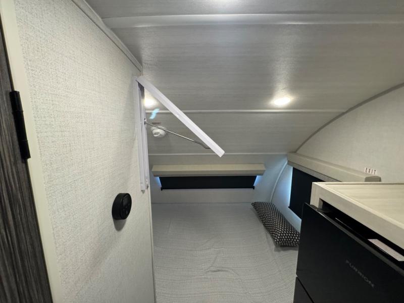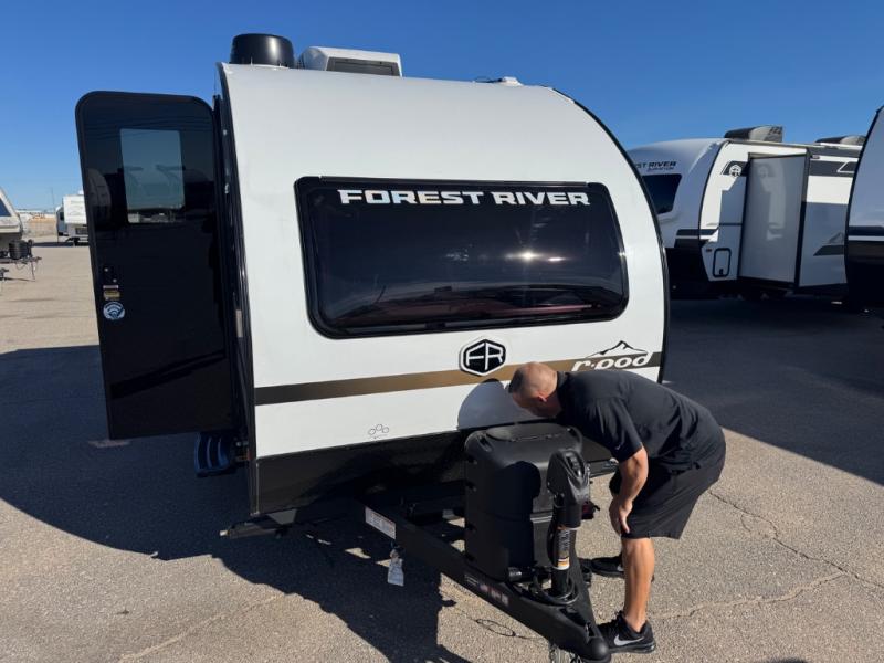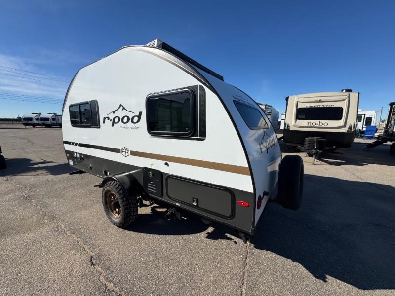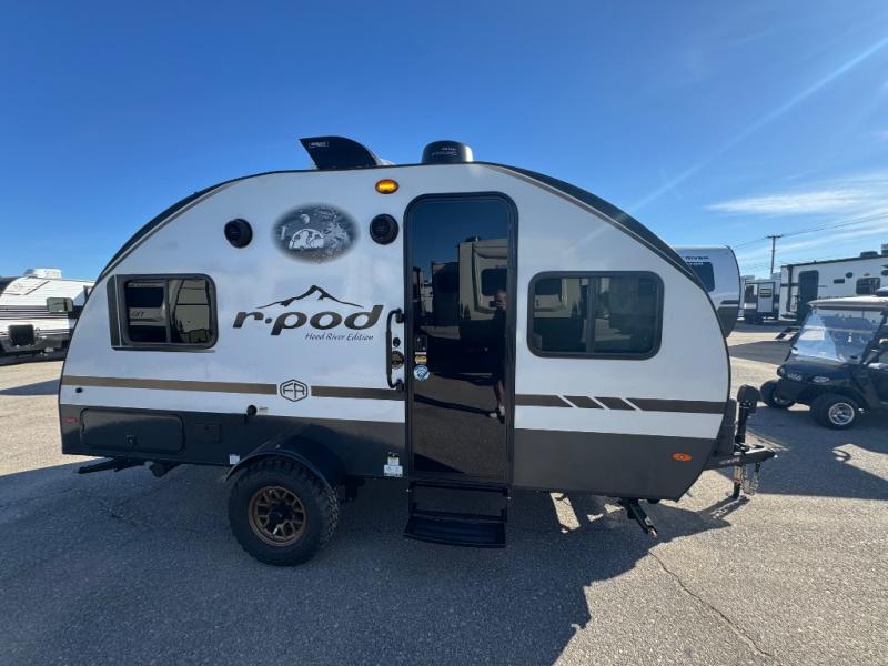 With any R-Pod travel trailer by Forest River, you will enjoy affordable luxury at the lowest tow weight in its class! There is a sealed underbelly with forced heat, a curved dual-pane acrylic front window with a bug screen and night shade, plus a large roof mounted solar panel for off-grid capabilities. The 15K A/C unit will keep you comfortable during the summer camping months, and the tankless water heater will provide endless hot showers after hiking, biking, swimming and more! Each model also includes a black glass friction hinge entrance door, roof ladder prep, exterior motion lighting, plus a hot and cold exterior spray port to wash off sand from the beach. Inside, you'll enjoy seamless Surf-X kitchen countertops, blackout roller shades, and a central vacuum system for hassle-free cleaning!