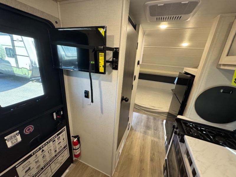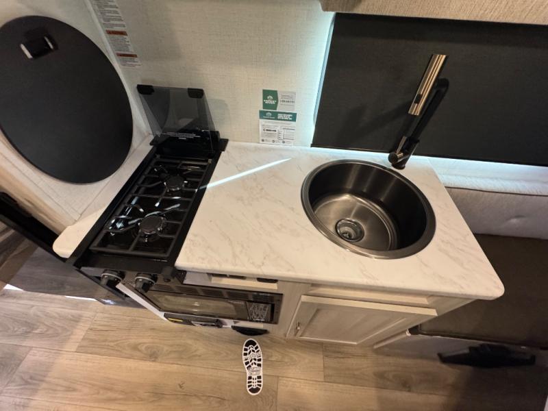 This travel trailer by Forest River is perfect for your weekend getaways. You can easily sleep three people with a rear queen bed and the front dinette folded down for the little ones. This unit also includes a 12V TV to enjoy while you're stuck inside on a rainy day. You will also find a convenient wet bath where you can easily get ready for your day of fun and adventure! This model also includes the Hood River Edition that comes with Mud Legend all terrain tires with TPMS, a MaxxAir vent cover, and 12V tank heaters!