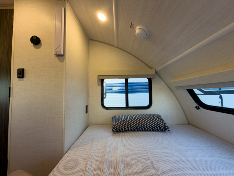 A: The RP-171 delivers a compact floorplan with a full bed, dry bath, dinette, and smart storage in a tow-friendly package.