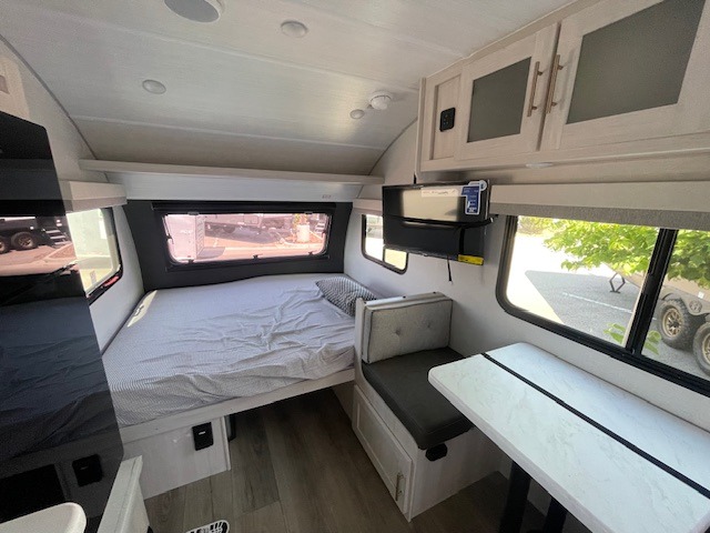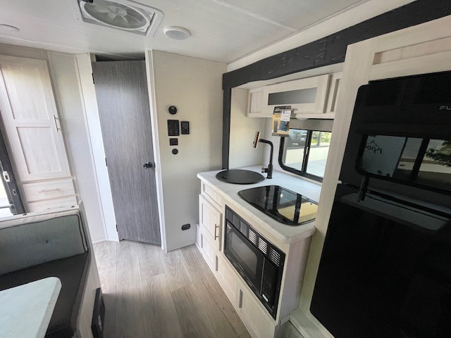 Get ready to travel just about anywhere with this lightweight travel trailer! This model is ideal for any couple. There is sleeping space on the front queen bed, and the booth dinette can easily convert into a sleeping spot for an additional camper. The slide out helps open up the floor space, plus you will find all of the kitchen amenities here. The spacious full rear bath with a night light has plenty of room to easily get ready for any adventure that lies ahead, and you will also enjoy all of the exterior storage for all of your outdoor camping gear.