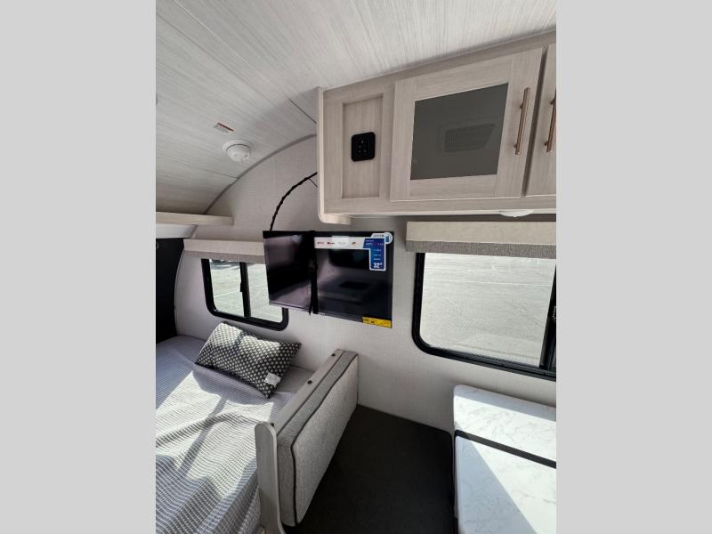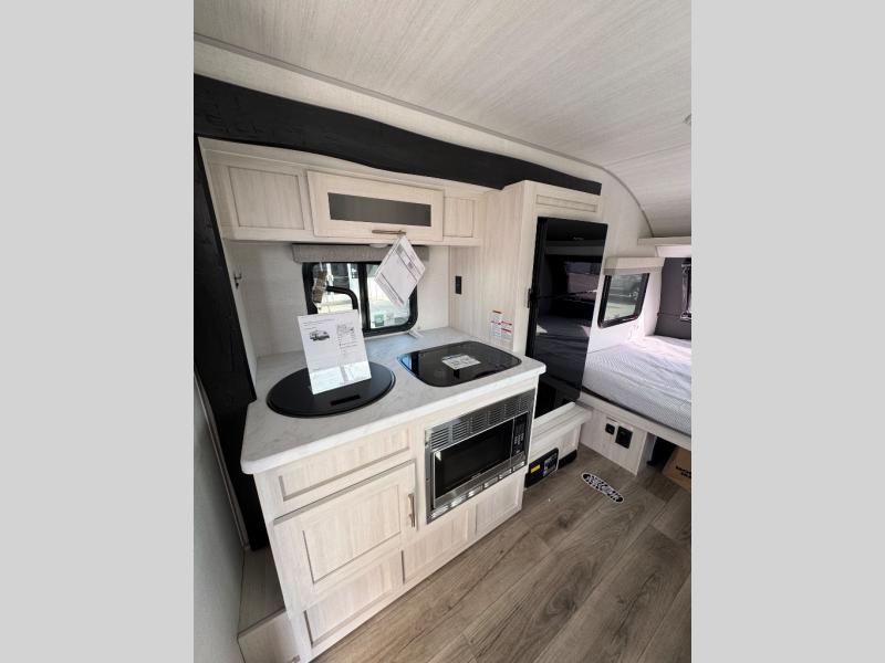 Get ready to travel just about anywhere with this lightweight travel trailer! This model is ideal for any couple. There is sleeping space on the front queen bed, and the booth dinette can easily convert into a sleeping spot for another tired camper. The slide out along the roadside helps open up the floor space, plus you will find all of the kitchen amenities here. The spacious full rear bath with a night light in the rear has plenty of room to easily get ready for any adventure that lies ahead. You will also enjoy all of the exterior storage for all of your outdoor camping gear. This model also includes the Hood River Edition that comes with Mud Legend all terrain tires with TPMS, a MaxxAir vent cover, and 12V tank heaters!