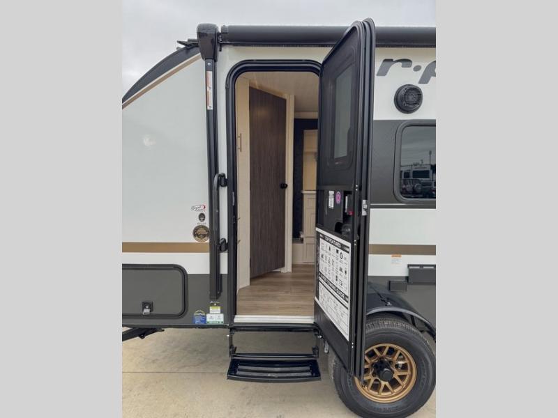 With any R-Pod travel trailer by Forest River, you will enjoy affordable luxury at the lowest tow weight in its class! There is a sealed underbelly with forced heat, a curved dual-pane acrylic front window with a bug screen and night shade, plus a large roof mounted solar panel for off-grid capabilities. The 15K A/C unit will keep you comfortable during the summer camping months, and the tankless water heater will provide endless hot showers after hiking, biking, swimming and more! Each model also includes a black glass friction hinge entrance door, roof ladder prep, exterior motion lighting, plus a hot and cold exterior spray port to wash off sand from the beach. Inside, you'll enjoy seamless Surf-X kitchen countertops, blackout roller shades, and a central vacuum system for hassle-free cleaning!