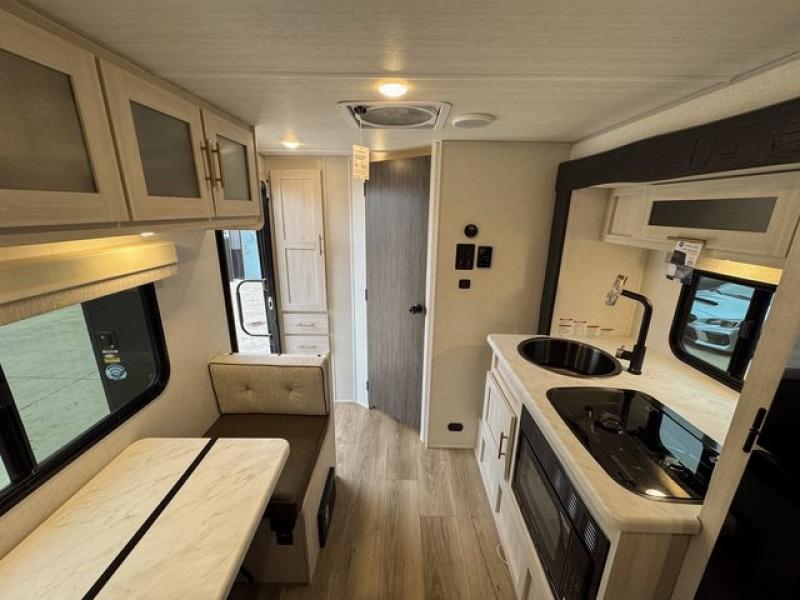 Get ready to travel just about anywhere with this lightweight travel trailer! This model is ideal for any couple. There is sleeping space on the front queen bed, and the booth dinette can easily convert into a sleeping spot for an additional camper. The slide out helps open up the floor space, plus you will find all of the kitchen amenities here. The spacious full rear bath with a night light has plenty of room to easily get ready for any adventure that lies ahead, and you will also enjoy all of the exterior storage for all of your outdoor camping gear.