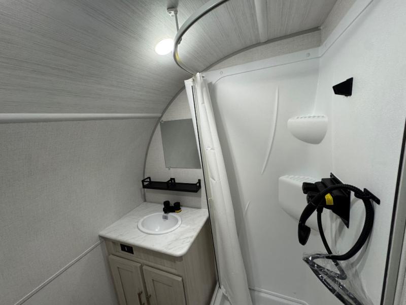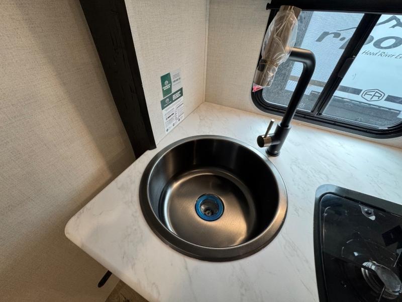 With any R-Pod travel trailer by Forest River, you will enjoy affordable luxury at the lowest tow weight in its class! There is a sealed underbelly with forced heat, a curved dual-pane acrylic front window with a bug screen and night shade, plus a large roof mounted solar panel for off-grid capabilities. The 15K A/C unit will keep you comfortable during the summer camping months, and the tankless water heater will provide endless hot showers after hiking, biking, swimming and more! Each model also includes a black glass friction hinge entrance door, roof ladder prep, exterior motion lighting, plus a hot and cold exterior spray port to wash off sand from the beach. Inside, you'll enjoy seamless Surf-X kitchen countertops, blackout roller shades, and a central vacuum system for hassle-free cleaning!