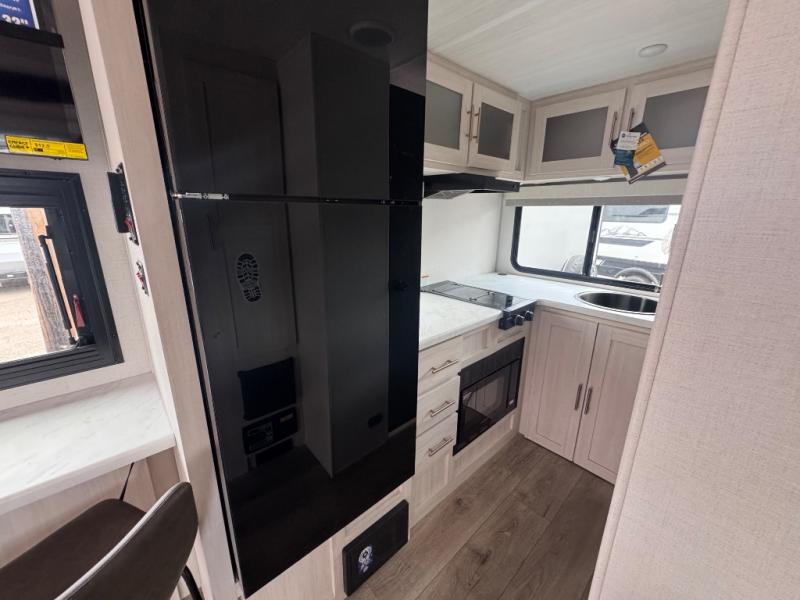 This travel trailer makes time at the campground easier than ever. Once you arrive at your site, you can put out the 14' awning, unload the exterior storage, then stretch your legs on a trail. The rear corner kitchen will let you make lunch when you return, and there is a bar top with two chairs where you can dine at. The jackknife sofa with leg rests is within a slide out so you can enjoy more floor space, and the front queen bed is sure to make you feel right at home.