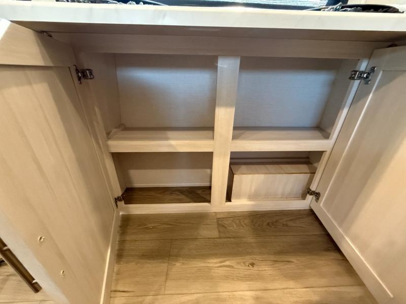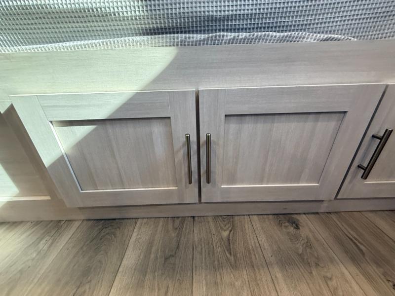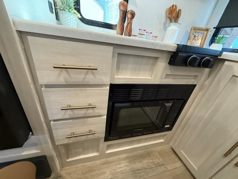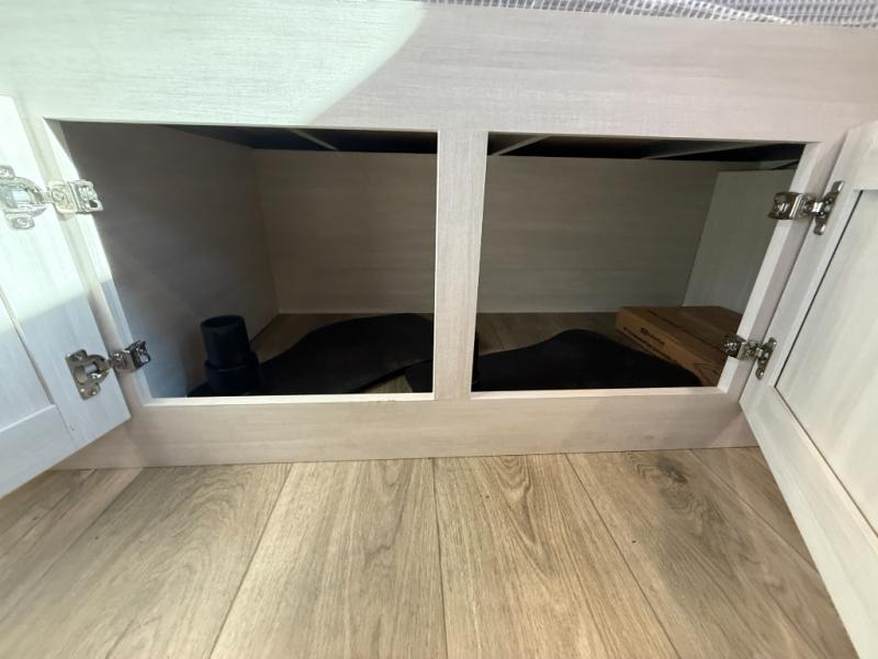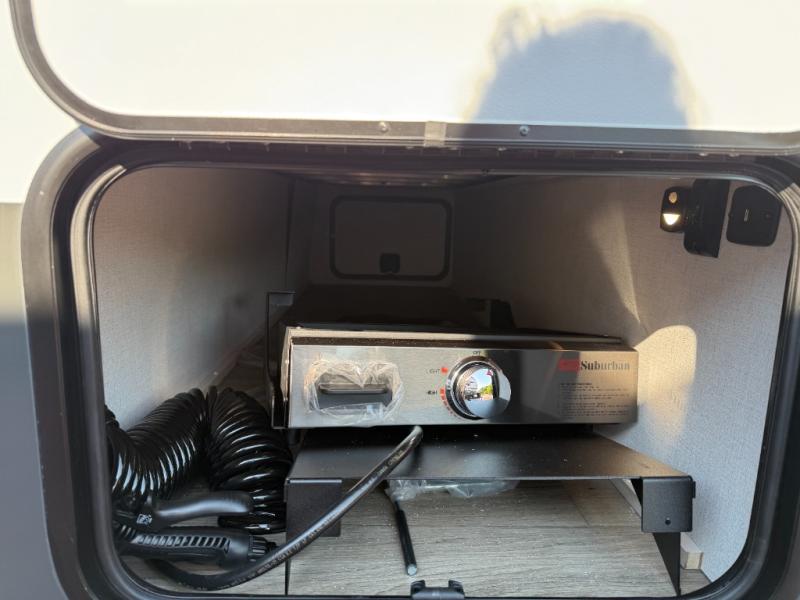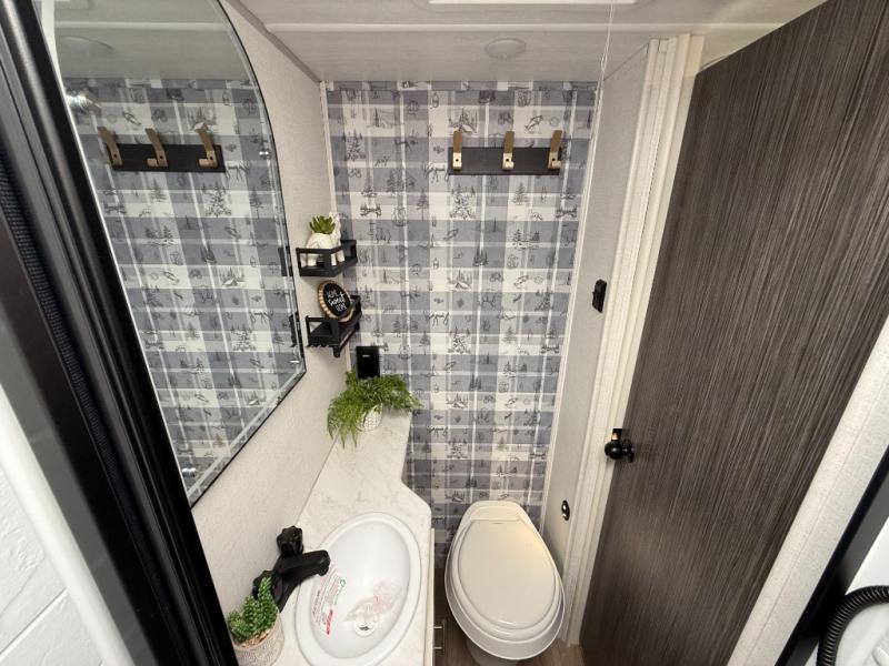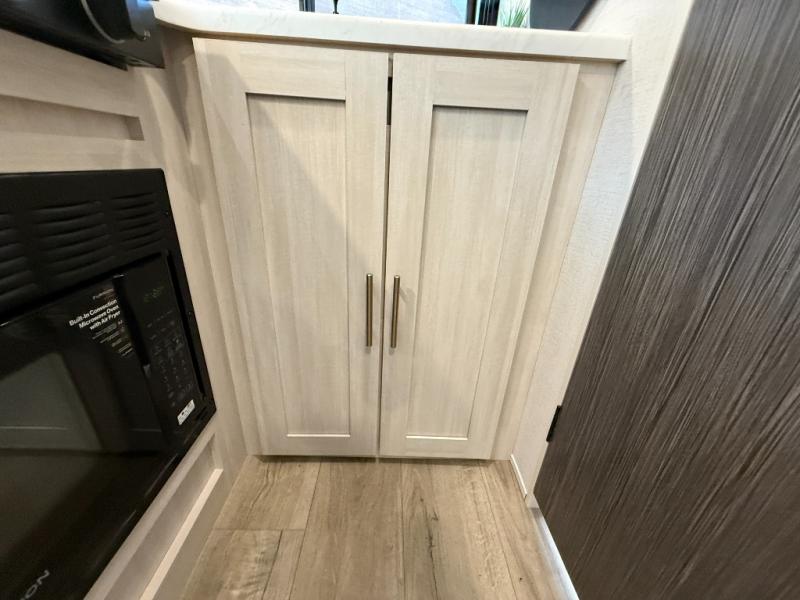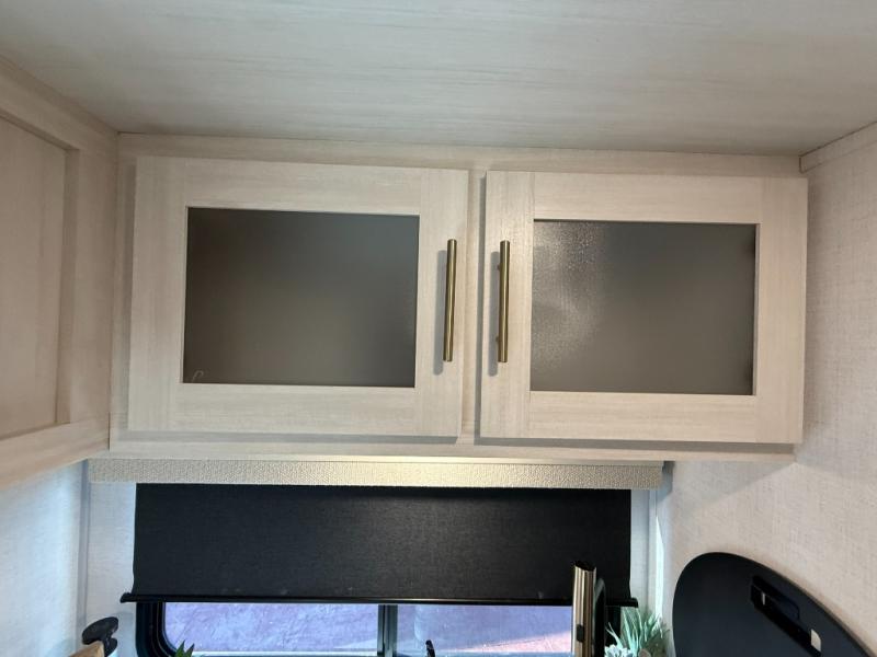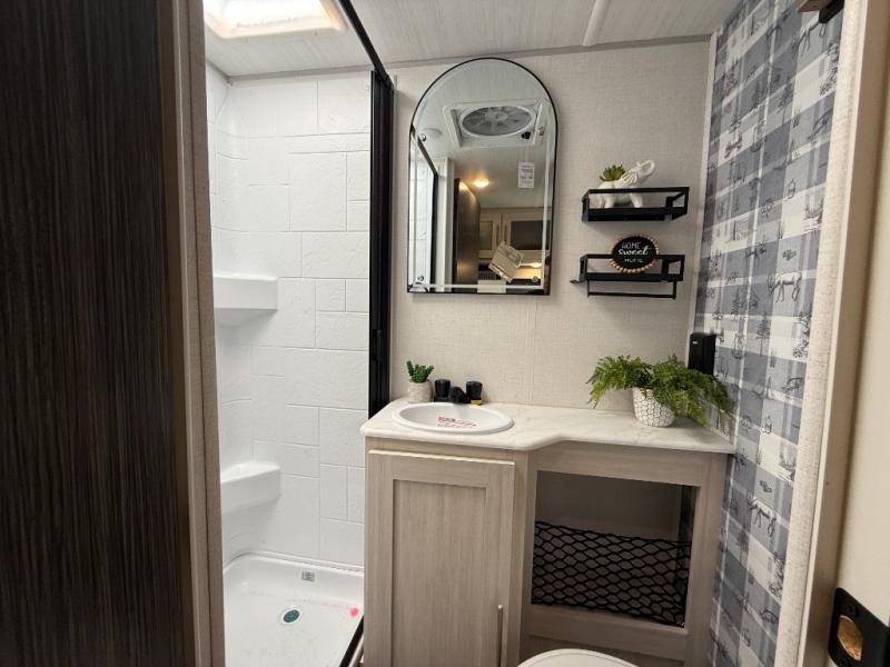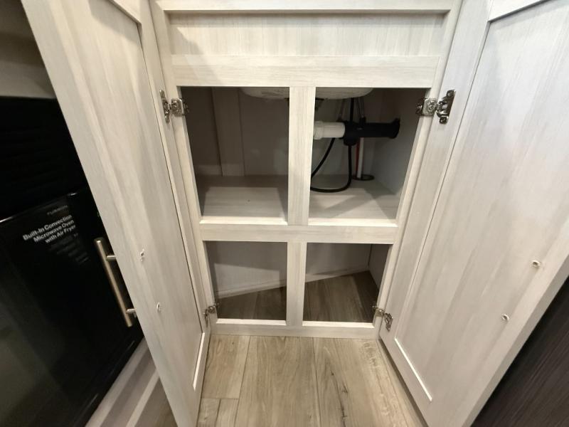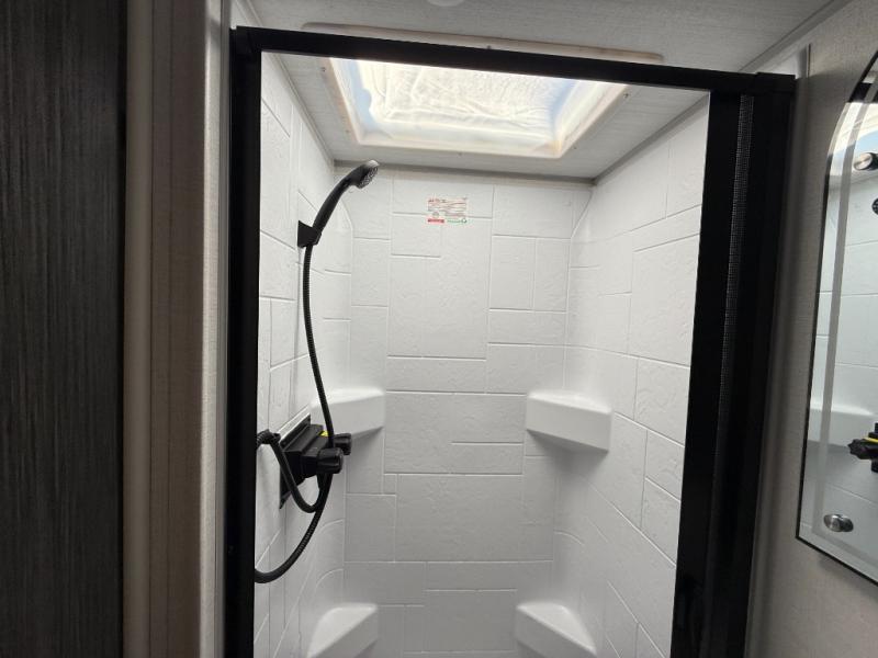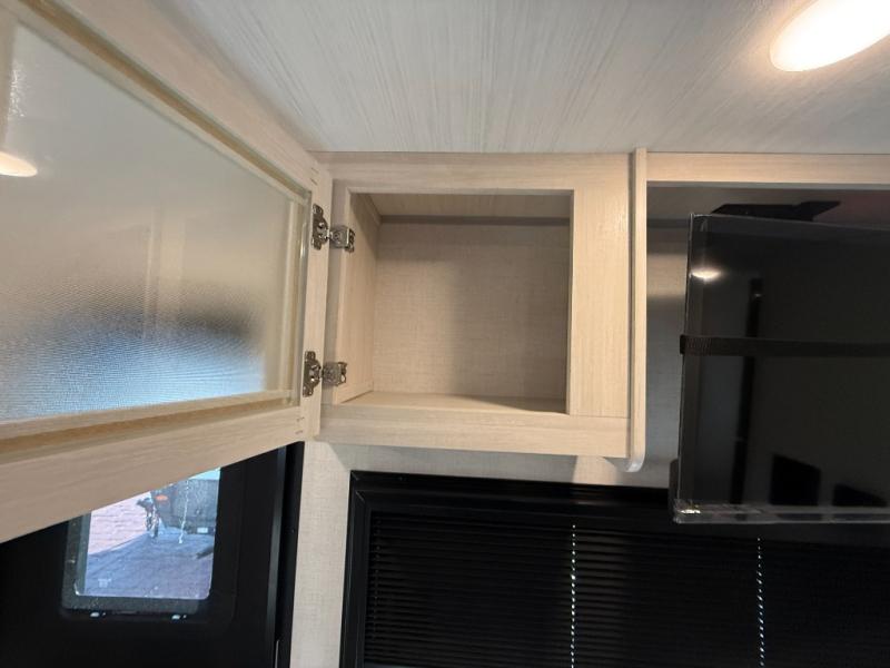 This travel trailer makes time at the campground easier than ever. Once you arrive at your site, you can put out the 14' awning, unload the exterior storage, then stretch your legs on a trail. The rear corner kitchen will let you make lunch when you return, and there is a bar top with two chairs where you can dine at. The jackknife sofa with leg rests is within a slide out so you can enjoy more floor space, and the front queen bed is sure to make you feel right at home.