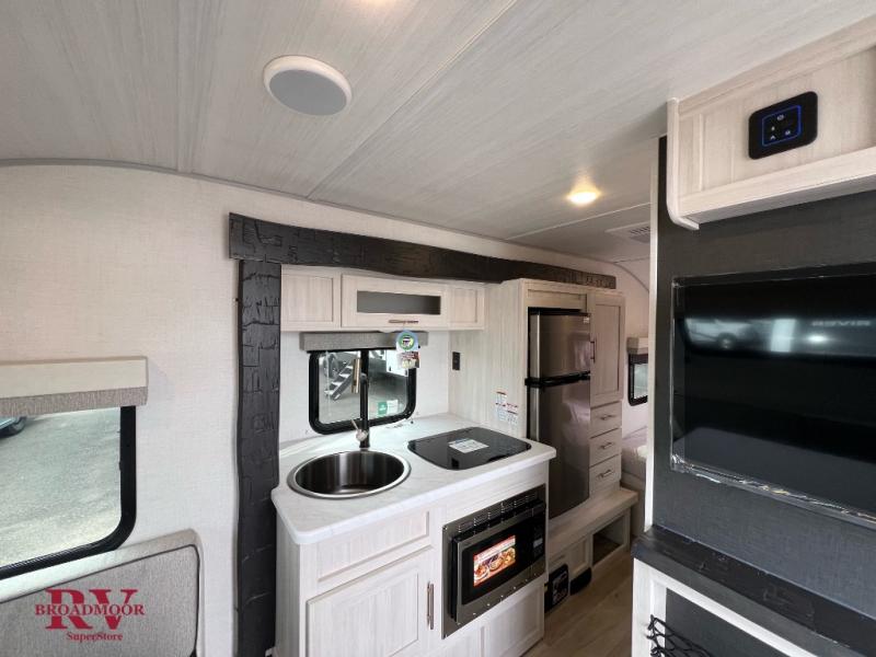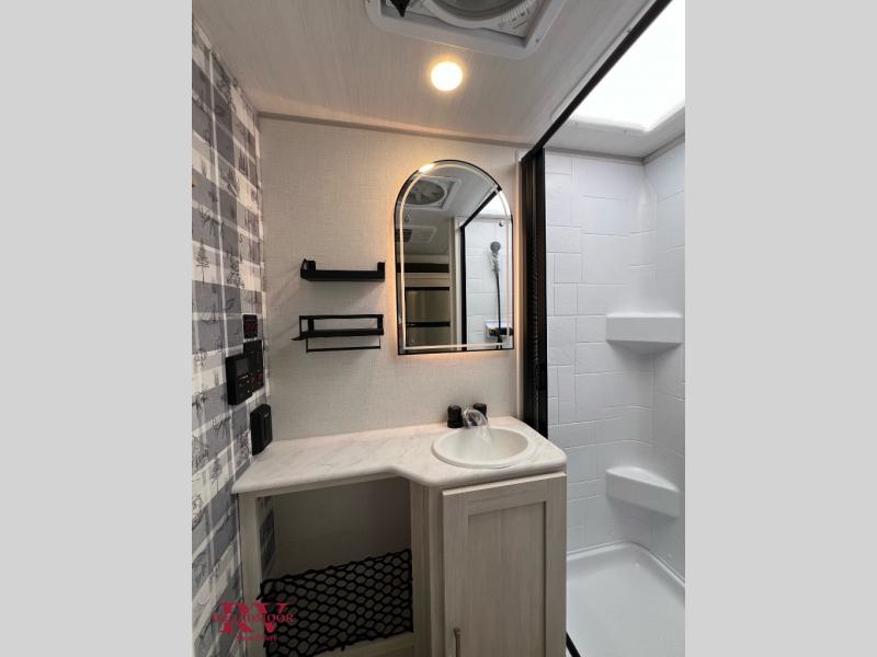 For the couple who is ready to camp anytime and anywhere, you will love how easy it is to camp with this travel trailer. This unit features a single slide giving you room to move about. Within this slide, you will find the kitchen amenities which include a two-burner cooktop and a 12V black glass refrigerator. You can enjoy your meals at the U-shaped dinette, and this can double as a sleeping space, if needed. Along the front of this model is a queen bed where you can rest up for another day of fun and adventure, and with all of the exterior storage, you can easily bring along all of your necessary camping items and more. This model also includes the Hood River Edition that comes with Mud Legend all terrain tires with TPMS, a MaxxAir vent cover, and 12V tank heaters!