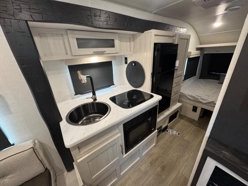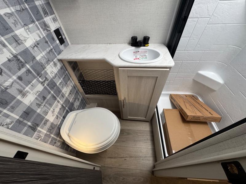 With any R-Pod travel trailer by Forest River, you will enjoy affordable luxury at the lowest tow weight in its class! There is a sealed underbelly with forced heat, a curved dual-pane acrylic front window with a bug screen and night shade, plus a large roof mounted solar panel for off-grid capabilities. The 15K A/C unit will keep you comfortable during the summer camping months, and the tankless water heater will provide endless hot showers after hiking, biking, swimming and more! Each model also includes a black glass friction hinge entrance door, roof ladder prep, exterior motion lighting, plus a hot and cold exterior spray port to wash off sand from the beach. Inside, you'll enjoy seamless Surf-X kitchen countertops, blackout roller shades, and a central vacuum system for hassle-free cleaning!
