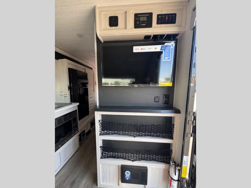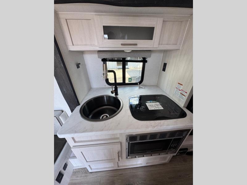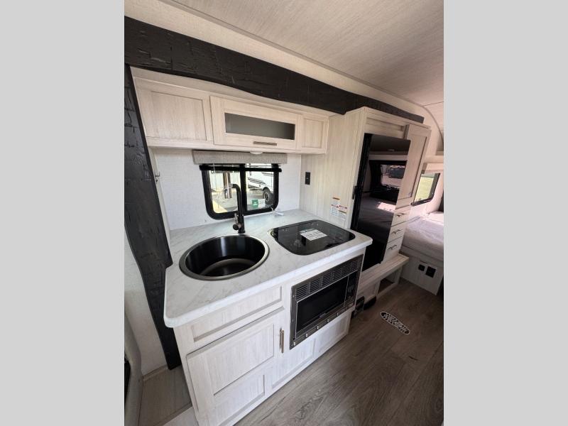 For the couple who is ready to camp anytime and anywhere, you will love how easy it is to camp with this travel trailer. This unit features a single slide giving you room to move about. Within this slide, you will find the kitchen amenities which include a two-burner cooktop and a 12V black glass refrigerator. You can enjoy your meals at the U-shaped dinette, and this can double as a sleeping space, if needed. Along the front of this model is a queen bed where you can rest up for another day of fun and adventure, and with all of the exterior storage, you can easily bring along all of your necessary camping items and more. This model also includes the Hood River Edition that comes with Mud Legend all terrain tires with TPMS, a MaxxAir vent cover, and 12V tank heaters!