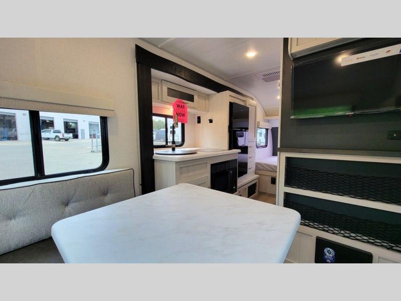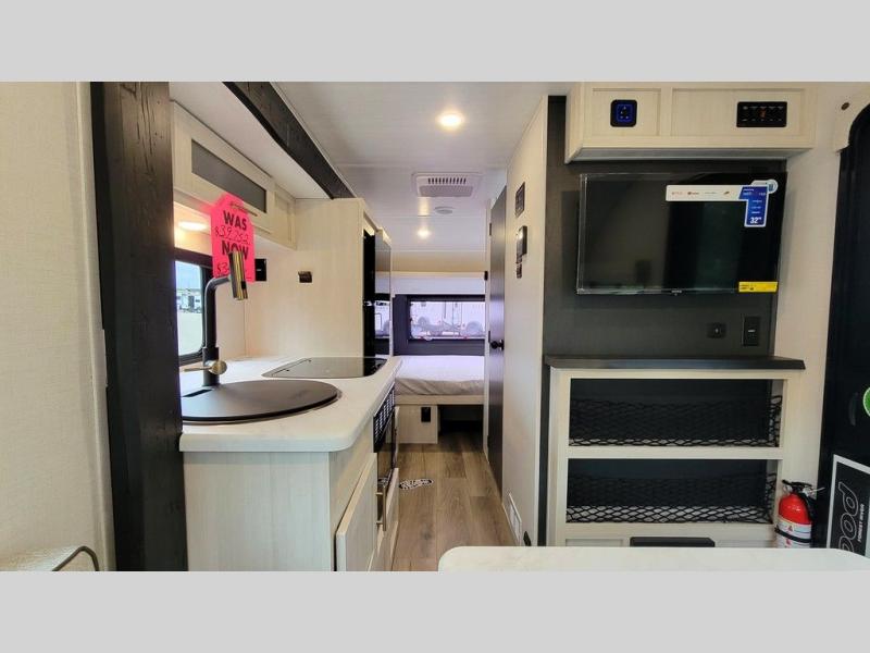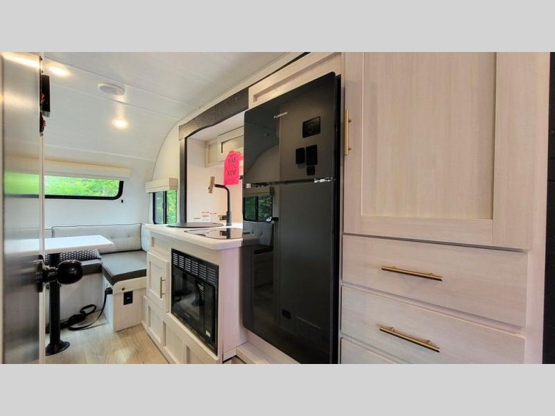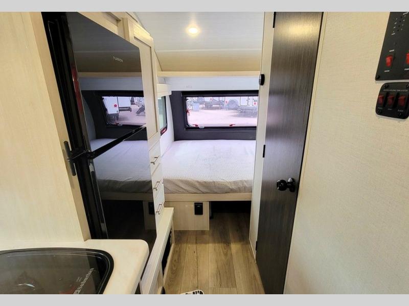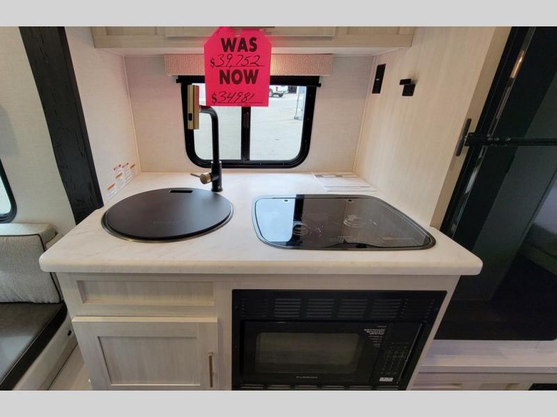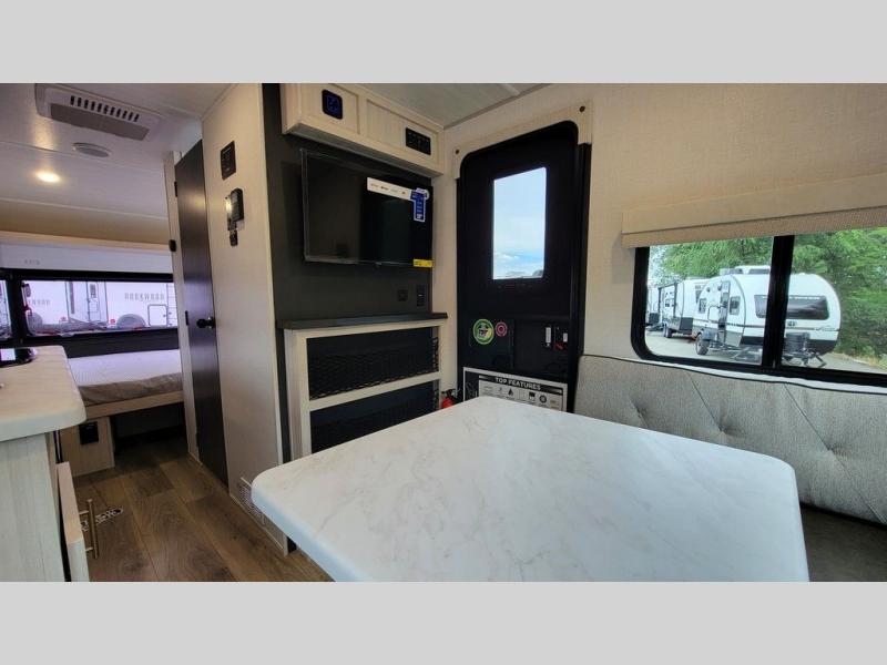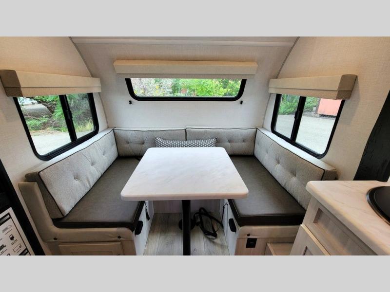 For the couple who is ready to camp anytime and anywhere, you will love how easy it is to camp with this travel trailer. This unit features a single slide giving you room to move about. Within this slide, you will find the kitchen amenities which include a two-burner cooktop and a 12V black glass refrigerator. You can enjoy your meals at the U-shaped dinette, and this can double as a sleeping space, if needed. Along the front of this model is a queen bed where you can rest up for another day of fun and adventure, and with all of the exterior storage, you can easily bring along all of your necessary camping items and more. This model also includes the Hood River Edition that comes with Mud Legend all terrain tires with TPMS, a MaxxAir vent cover, and 12V tank heaters!