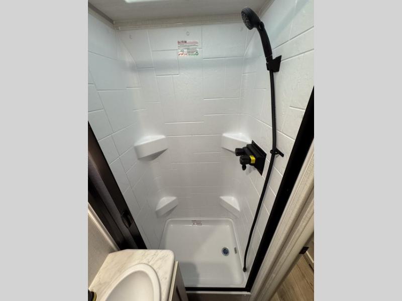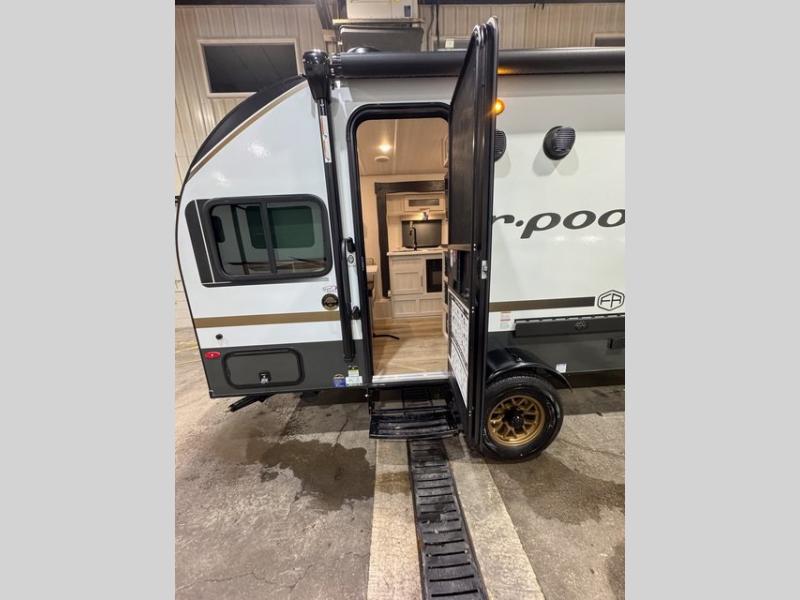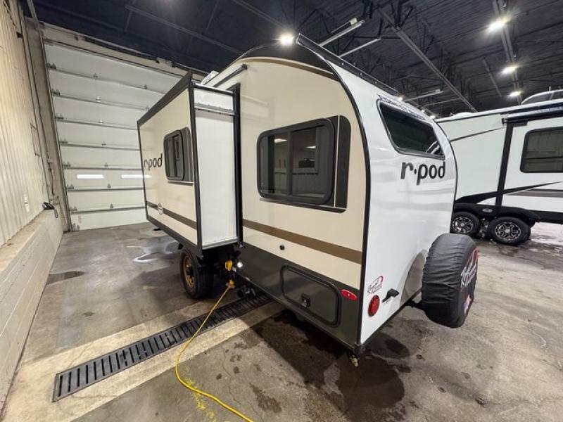 With any R-Pod travel trailer by Forest River, you will enjoy affordable luxury at the lowest tow weight in its class! There is a sealed underbelly with forced heat, a curved dual-pane acrylic front window with a bug screen and night shade, plus a large roof mounted solar panel for off-grid capabilities. The 15K A/C unit will keep you comfortable during the summer camping months, and the tankless water heater will provide endless hot showers after hiking, biking, swimming and more! Each model also includes a black glass friction hinge entrance door, roof ladder prep, exterior motion lighting, plus a hot and cold exterior spray port to wash off sand from the beach. Inside, you'll enjoy seamless Surf-X kitchen countertops, blackout roller shades, and a central vacuum system for hassle-free cleaning!
