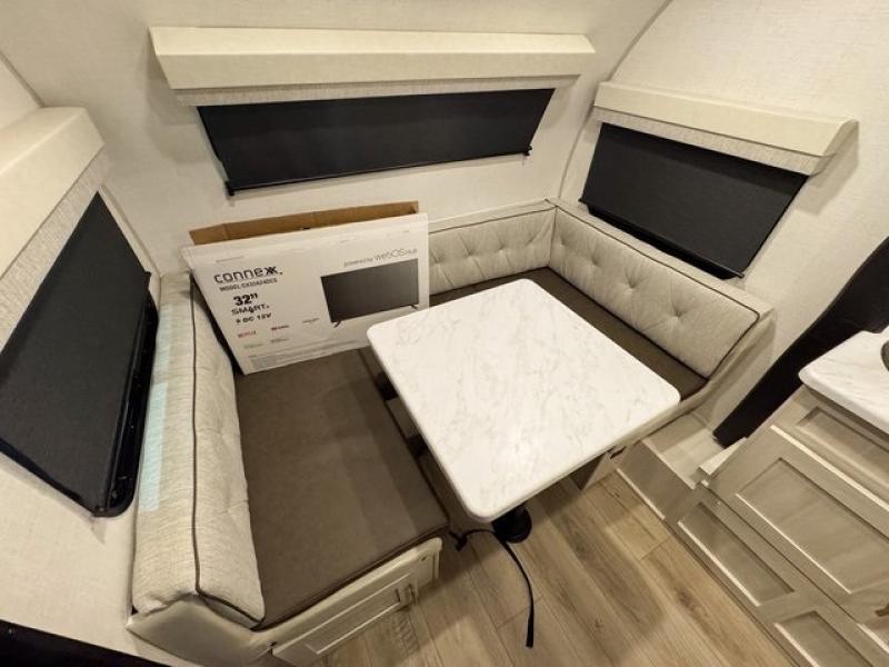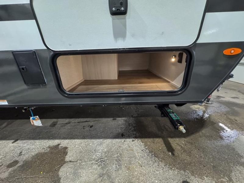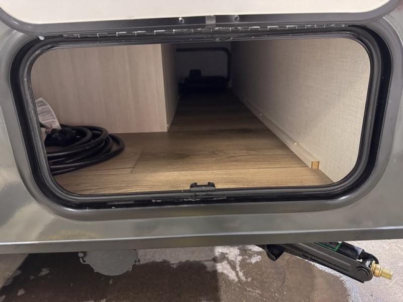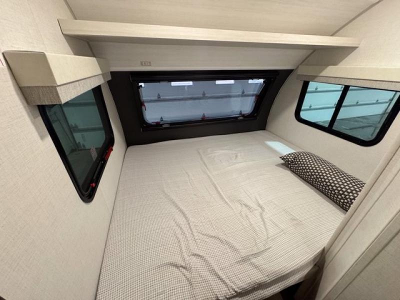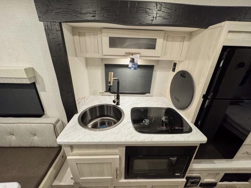 For the couple who is ready to camp anytime and anywhere, you will love how easy it is to camp with this travel trailer. This unit features a single slide giving you room to move about. Within this slide, you will find the kitchen amenities which include a two-burner cooktop and a 12V black glass refrigerator. You can enjoy your meals at the U-shaped dinette, and this can double as a sleeping space, if needed. Along the front of this model is a queen bed where you can rest up for another day of fun and adventure, and with all of the exterior storage, you can easily bring along all of your necessary camping items and more. This model also includes the Hood River Edition that comes with Mud Legend all terrain tires with TPMS, a MaxxAir vent cover, and 12V tank heaters!