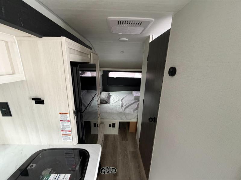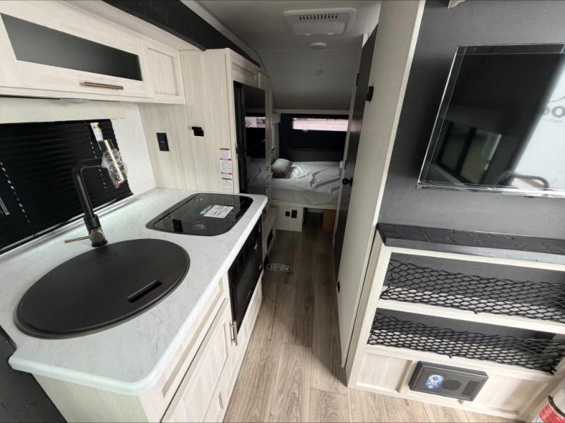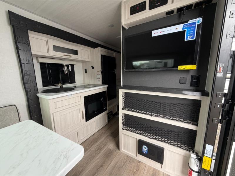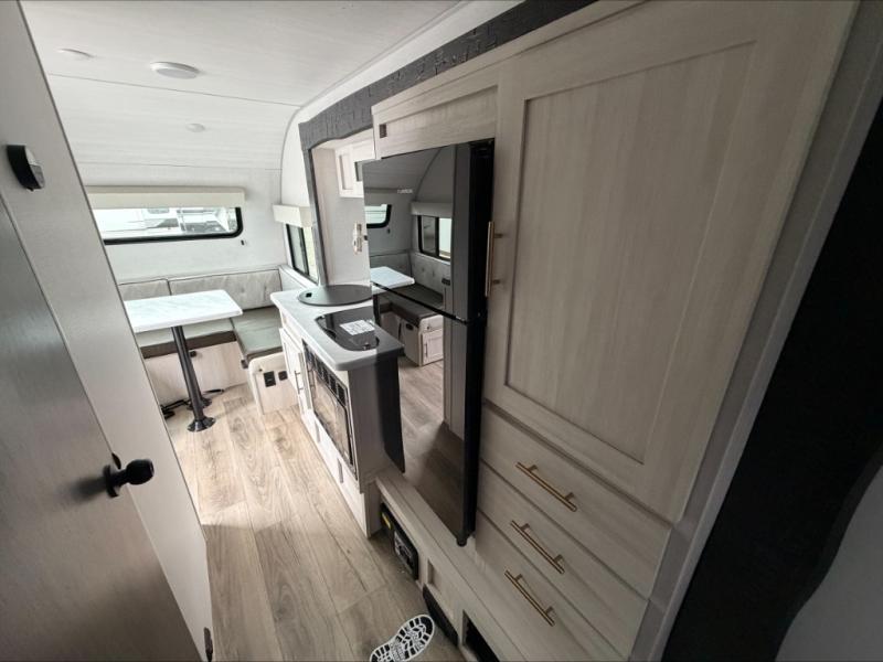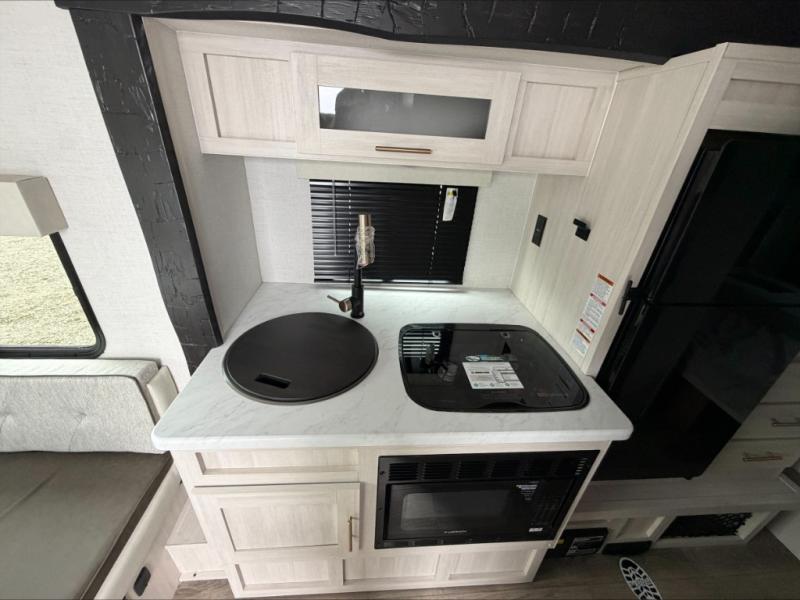 For the couple who is ready to camp anytime and anywhere, you will love how easy it is to camp with this travel trailer. This unit features a single slide giving you room to move about. Within this slide, you will find the kitchen amenities which include a two-burner cooktop and a 12V black glass refrigerator. You can enjoy your meals at the U-shaped dinette, and this can double as a sleeping space, if needed. Along the front of this model is a queen bed where you can rest up for another day of fun and adventure, and with all of the exterior storage, you can easily bring along all of your necessary camping items and more. This model also includes the Hood River Edition that comes with Mud Legend all terrain tires with TPMS, a MaxxAir vent cover, and 12V tank heaters!