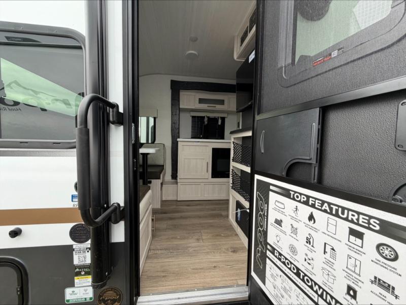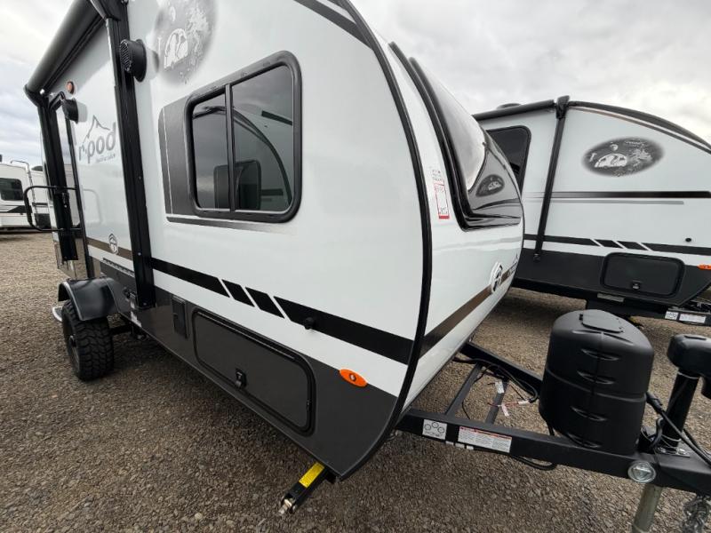 With any R-Pod travel trailer by Forest River, you will enjoy affordable luxury at the lowest tow weight in its class! There is a sealed underbelly with forced heat, a curved dual-pane acrylic front window with a bug screen and night shade, plus a large roof mounted solar panel for off-grid capabilities. The 15K A/C unit will keep you comfortable during the summer camping months, and the tankless water heater will provide endless hot showers after hiking, biking, swimming and more! Each model also includes a black glass friction hinge entrance door, roof ladder prep, exterior motion lighting, plus a hot and cold exterior spray port to wash off sand from the beach. Inside, you'll enjoy seamless Surf-X kitchen countertops, blackout roller shades, and a central vacuum system for hassle-free cleaning!