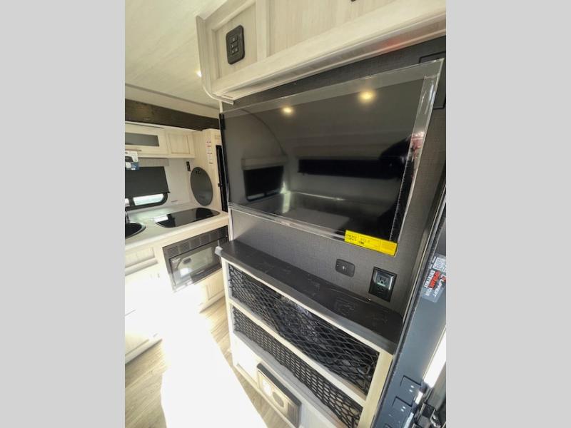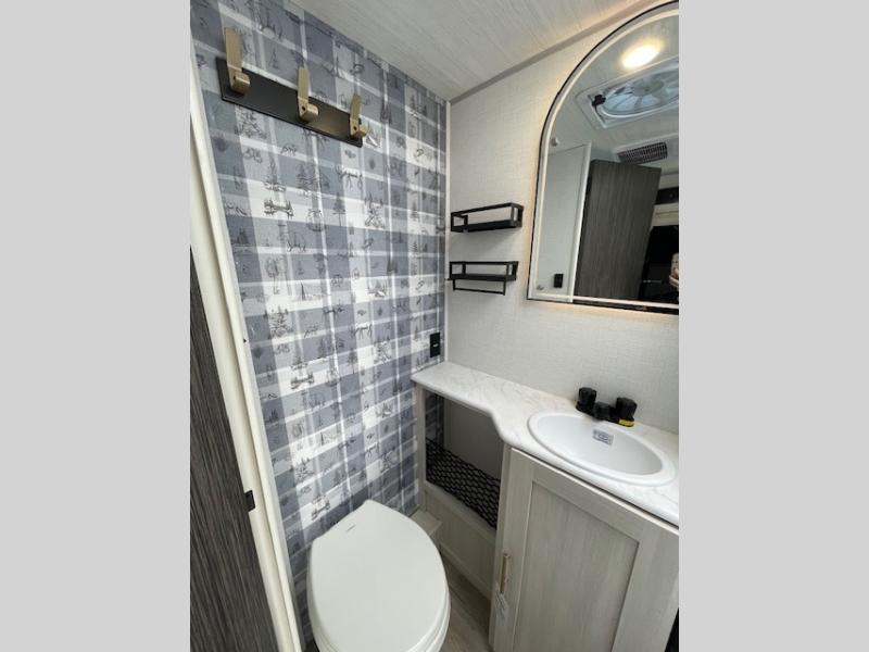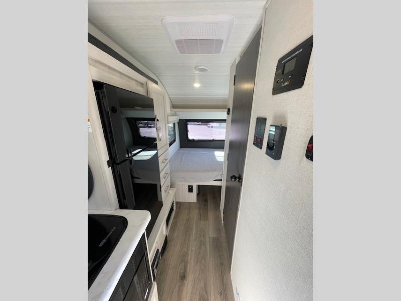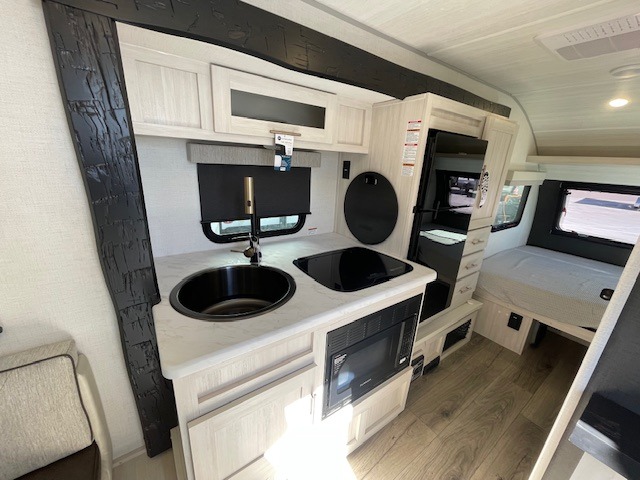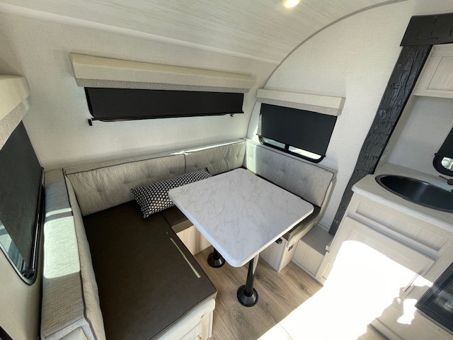 For the couple who is ready to camp anytime and anywhere, you will love how easy it is to travel with this travel trailer. You can easily set up the single slide to give you more room to move about. Within this slide, you will find the kitchen amenities, which include a two-burner cooktop, air fryer microwave and a 12V black glass refrigerator. You can enjoy your meals at the U-shaped dinette, and this furniture can double as a sleeping space, if needed. Along the front is a queen bed where you can rest up for another day of fun and adventure. With all of the exterior storage, you can bring along all of your necessary camping items and more!