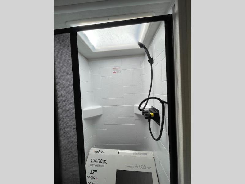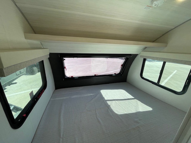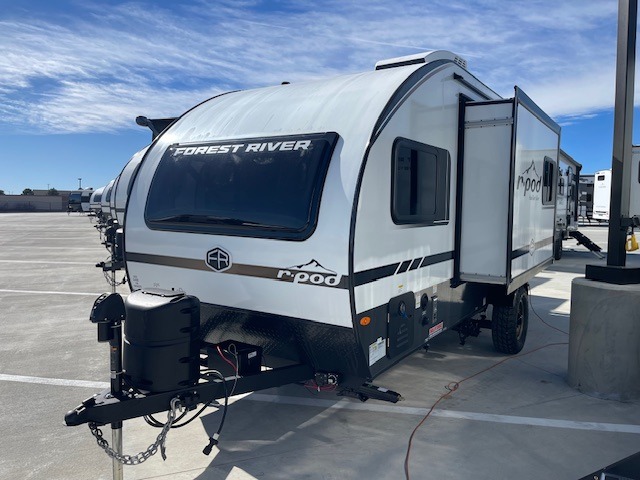With any R-Pod travel trailer by Forest River, you will enjoy affordable luxury at the lowest tow weight in its class! There is a sealed underbelly with forced heat, a curved dual-pane acrylic front window with a bug screen and night shade, plus a large roof mounted solar panel for off-grid capabilities. The 15K A/C unit will keep you comfortable during the summer camping months, and the tankless water heater will provide endless hot showers after hiking, biking, swimming and more! Each model also includes a black glass friction hinge entrance door, roof ladder prep, exterior motion lighting, plus a hot and cold exterior spray port to wash off sand from the beach. Inside, you'll enjoy seamless Surf-X kitchen countertops, blackout roller shades, and a central vacuum system for hassle-free cleaning!