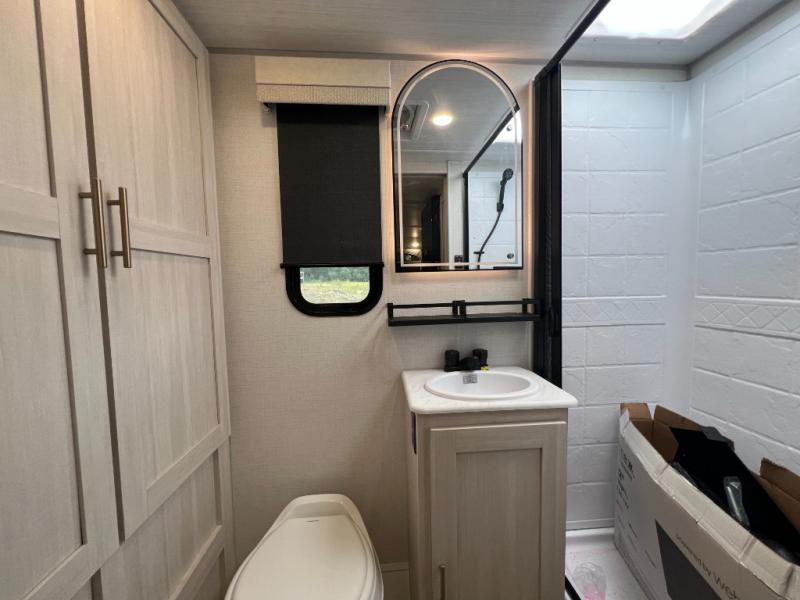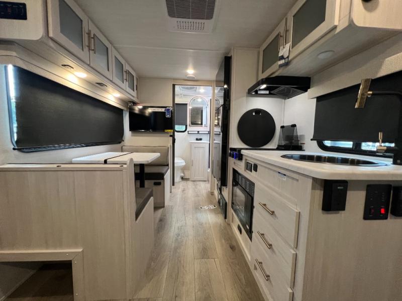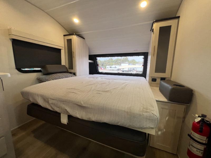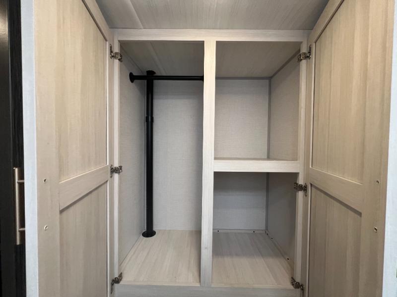 You're going to love all of the conveniences and versatility of this travel trailer! The front Murphy bed can fold away to reveal a sofa which gives you a comfortable place to sit during the day and to sleep at night too. The rear full bath features everything you will need to get squeaky clean each morning, as well as a large wardrobe for you to store your linens. After you have whipped up your best meal with the two-burner cooktop or convection microwave, you can head to the booth dinette and enjoy eating it there comfortably.