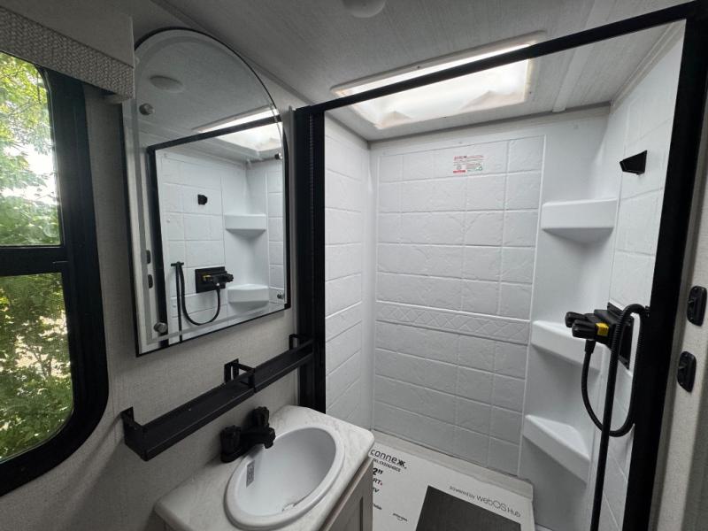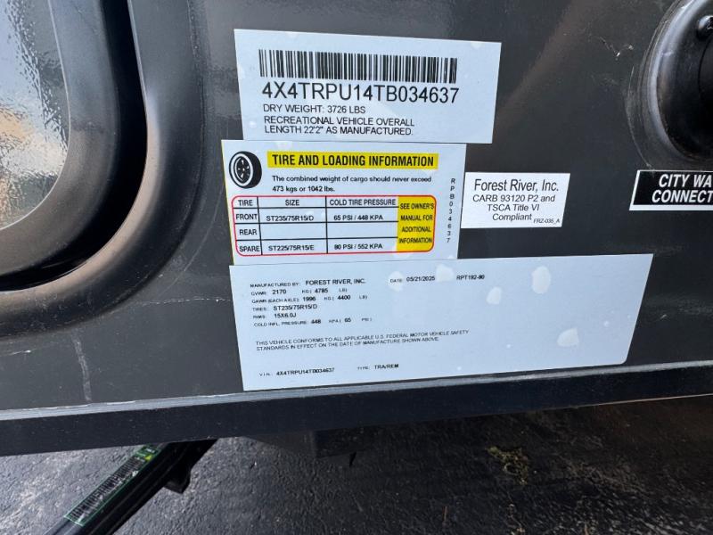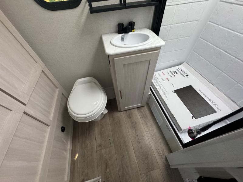 With any R-Pod travel trailer by Forest River, you will enjoy affordable luxury at the lowest tow weight in its class! There is a sealed underbelly with forced heat, a curved dual-pane acrylic front window with a bug screen and night shade, plus a large roof mounted solar panel for off-grid capabilities. The 15K A/C unit will keep you comfortable during the summer camping months, and the tankless water heater will provide endless hot showers after hiking, biking, swimming and more! Each model also includes a black glass friction hinge entrance door, roof ladder prep, exterior motion lighting, plus a hot and cold exterior spray port to wash off sand from the beach. Inside, you'll enjoy seamless Surf-X kitchen countertops, blackout roller shades, and a central vacuum system for hassle-free cleaning!