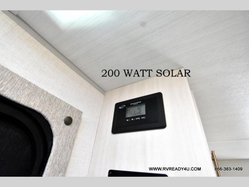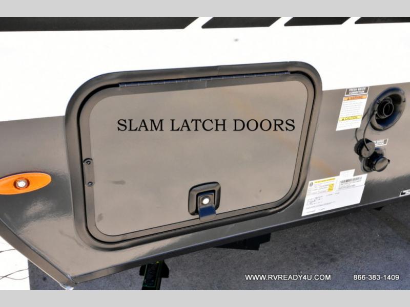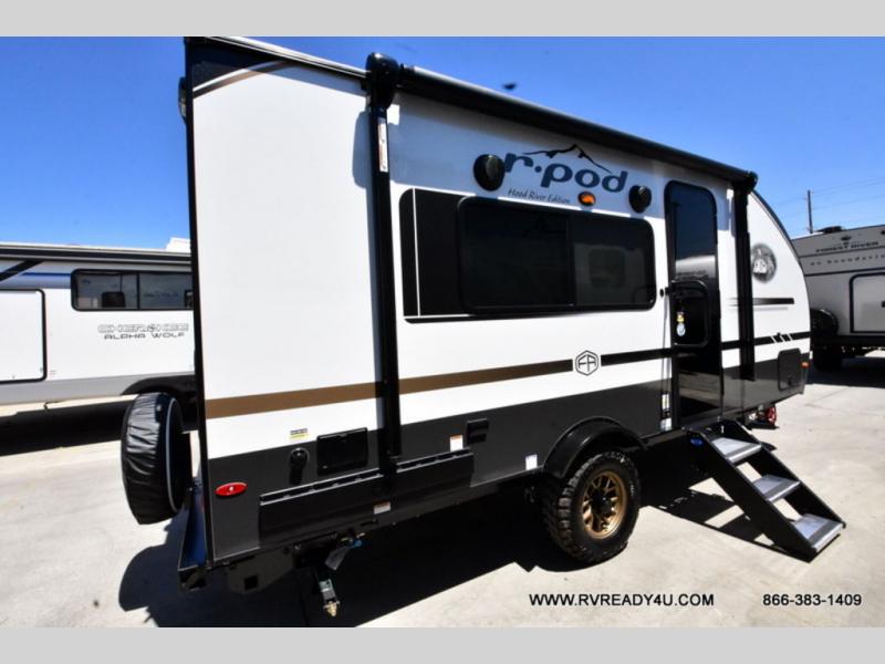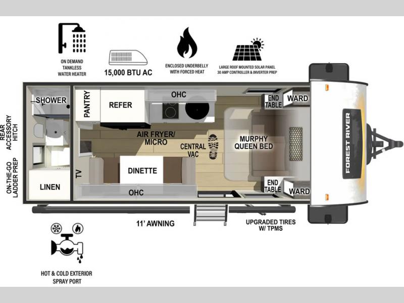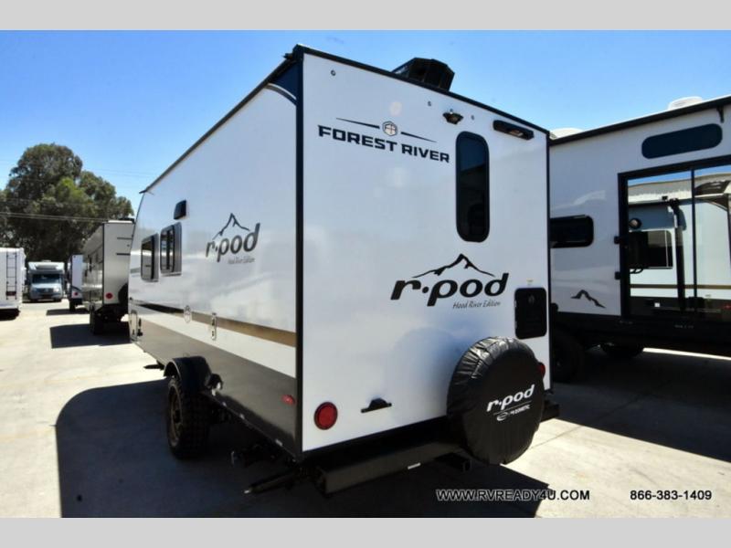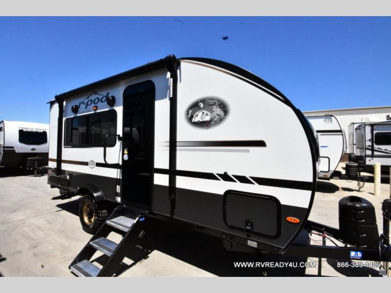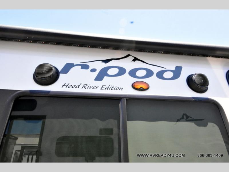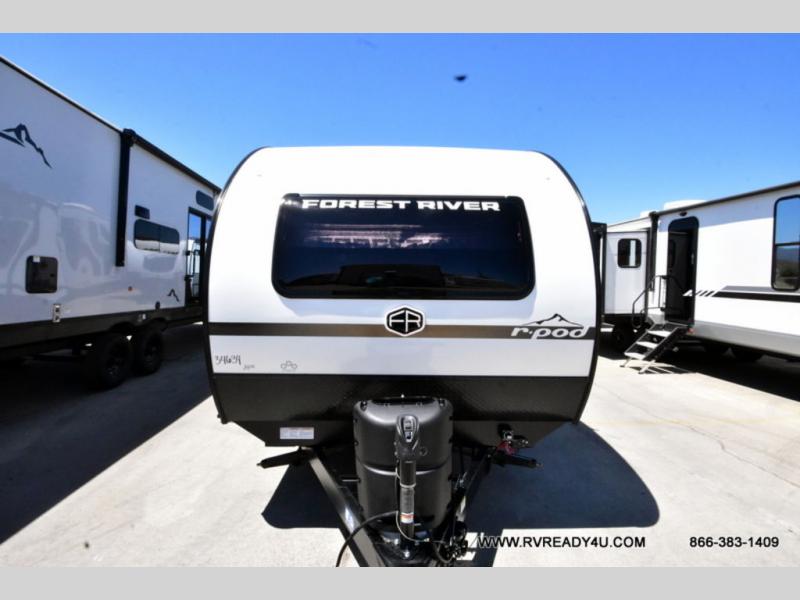 With any R-Pod travel trailer by Forest River, you will enjoy affordable luxury at the lowest tow weight in its class! There is a sealed underbelly with forced heat, a curved dual-pane acrylic front window with a bug screen and night shade, plus a large roof mounted solar panel for off-grid capabilities. The 15K A/C unit will keep you comfortable during the summer camping months, and the tankless water heater will provide endless hot showers after hiking, biking, swimming and more! Each model also includes a black glass friction hinge entrance door, roof ladder prep, exterior motion lighting, plus a hot and cold exterior spray port to wash off sand from the beach. Inside, you'll enjoy seamless Surf-X kitchen countertops, blackout roller shades, and a central vacuum system for hassle-free cleaning!