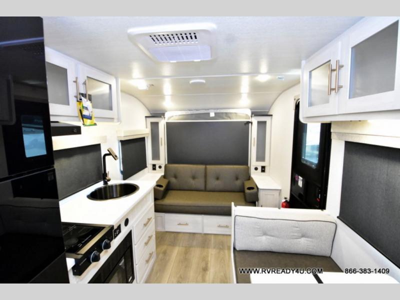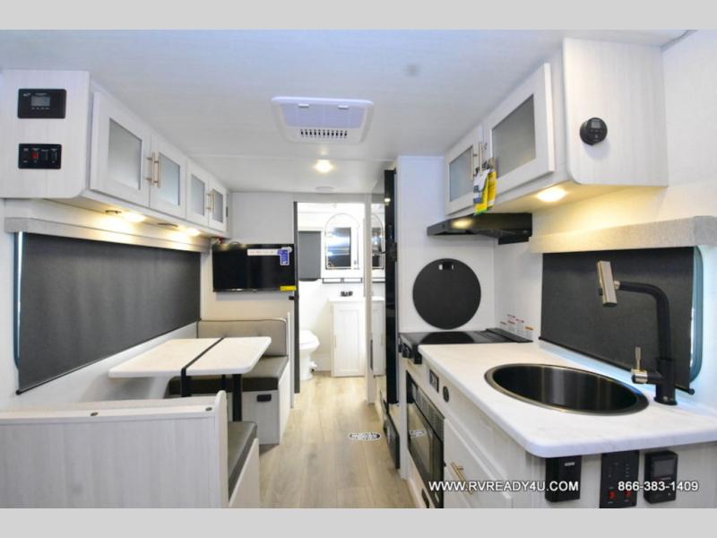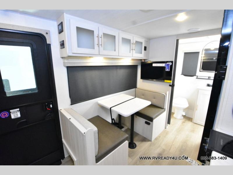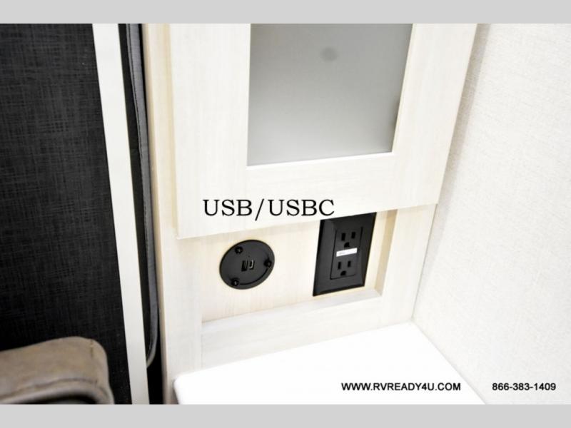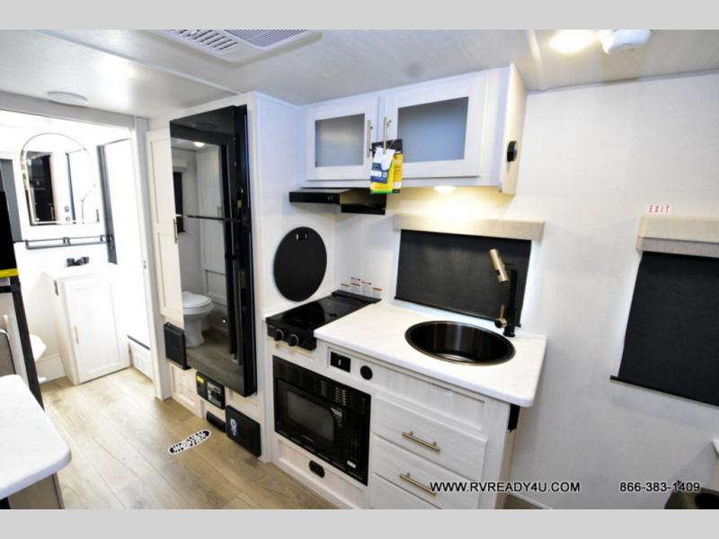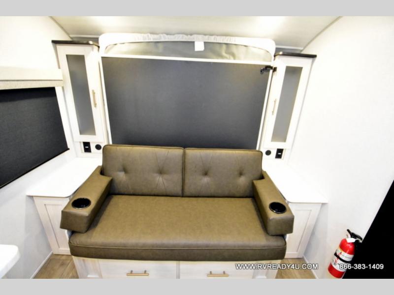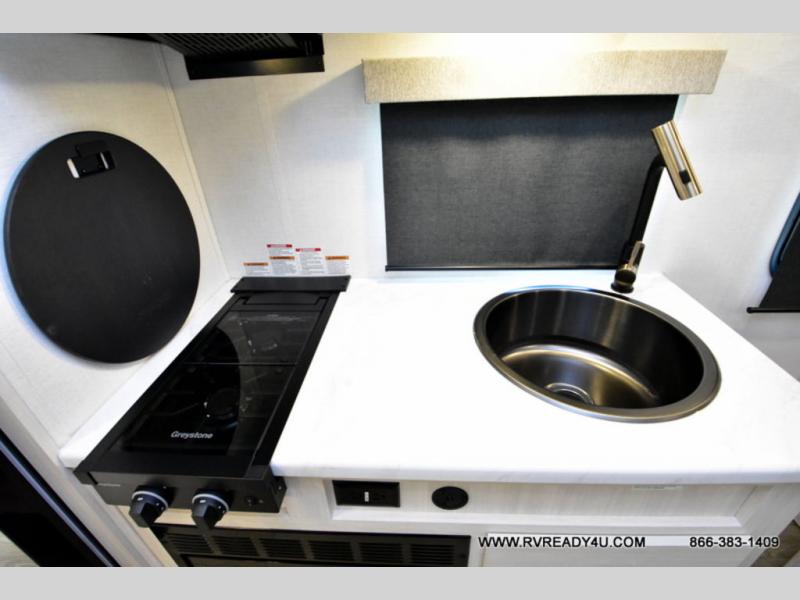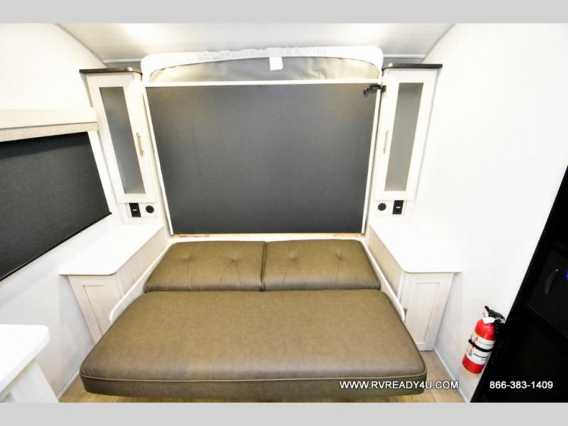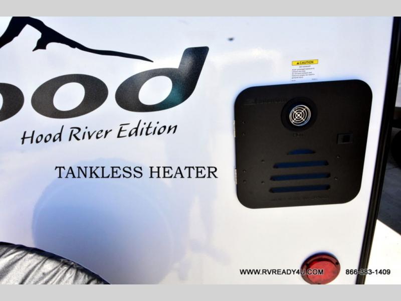You're going to love all of the conveniences and versatility of this travel trailer! The front Murphy bed folds away to reveal the sofa which gives you a comfortable place to sit during the day and to sleep at night too. The rear full bath features everything you will need to get squeaky clean each morning as well as a large linen closet for clean towels. After you have whipped up your best meal with the two-burner cooktop, you can head to the booth dinette and enjoy eating it there comfortably. This model also includes the Hood River Edition that comes with Mud Legend all terrain tires with TPMS, a MaxxAir vent cover, and 12V tank heaters!