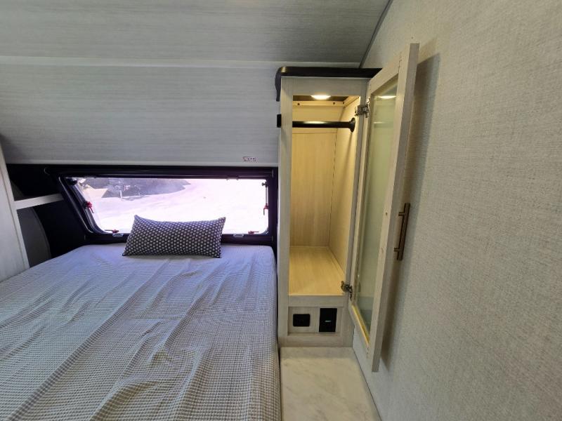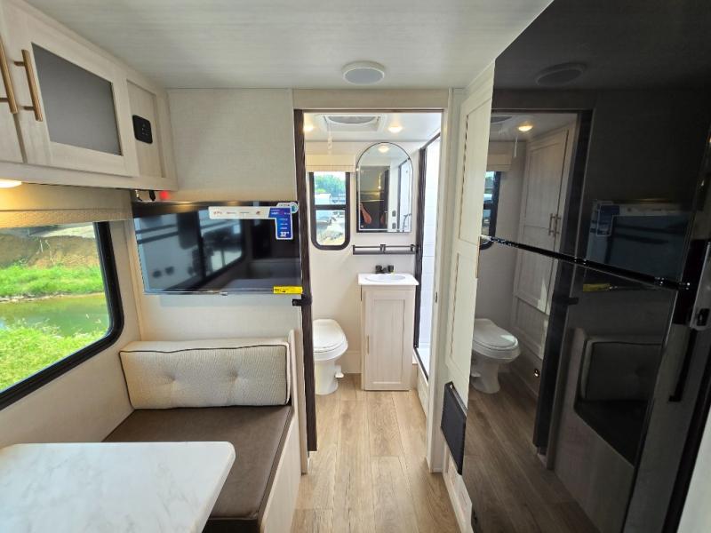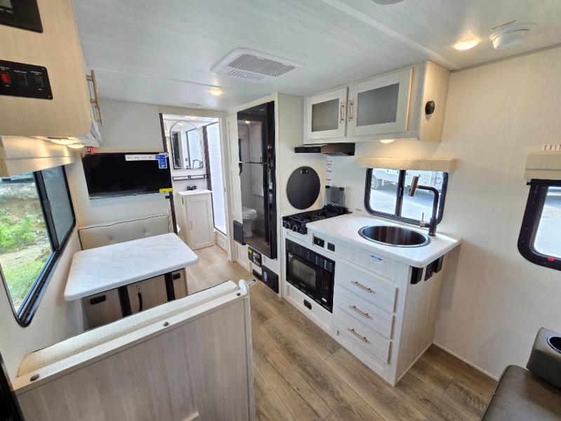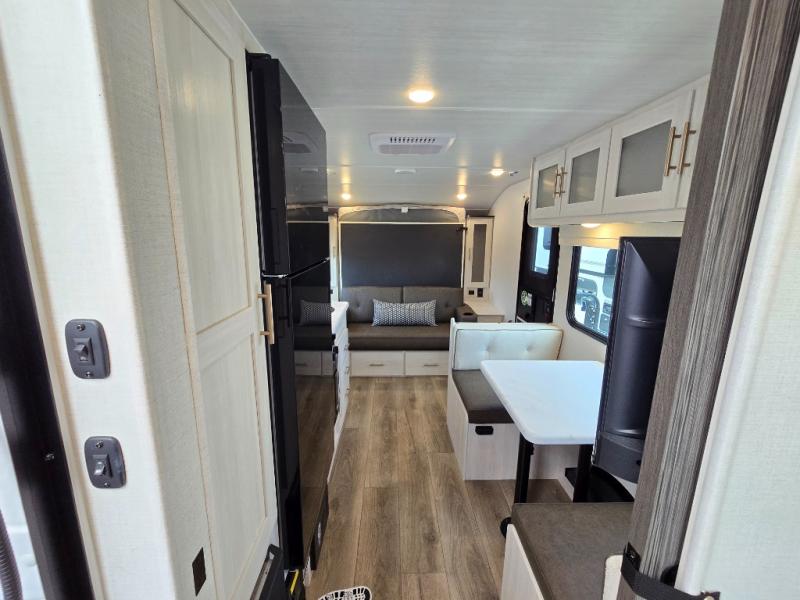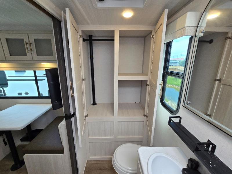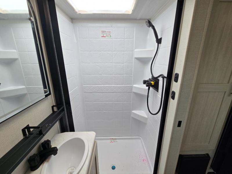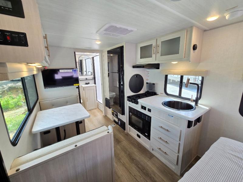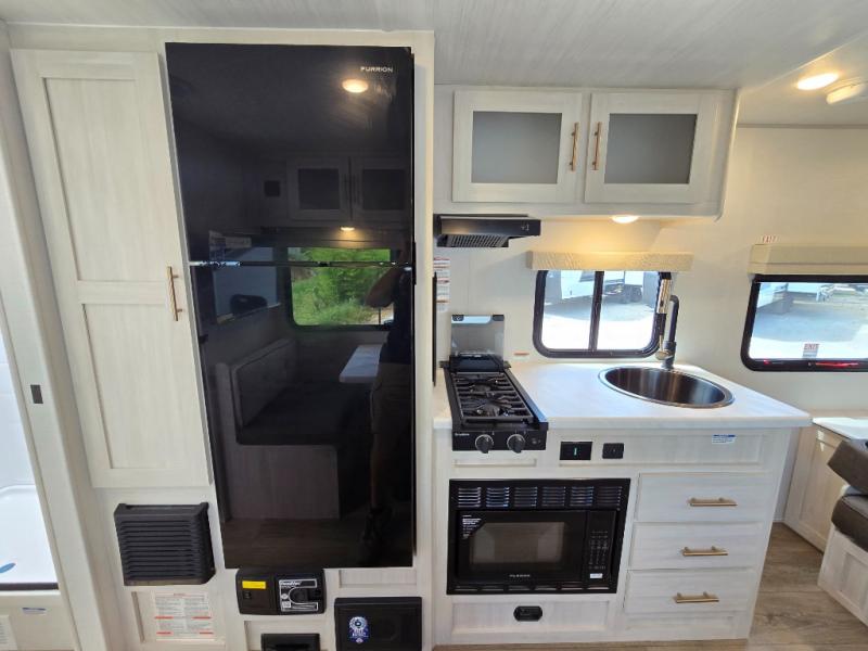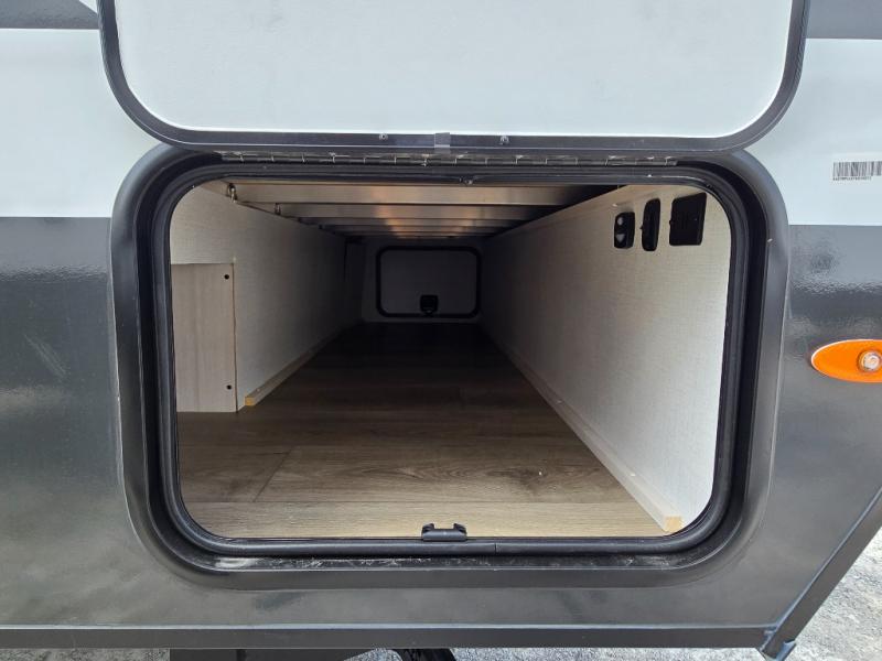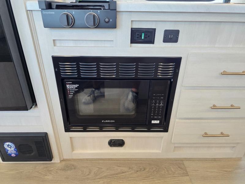 You're going to love all of the conveniences and versatility of this travel trailer! The front Murphy bed can fold away to reveal a sofa which gives you a comfortable place to sit during the day and to sleep at night too. The rear full bath features everything you will need to get squeaky clean each morning, as well as a large wardrobe for you to store your linens. After you have whipped up your best meal with the two-burner cooktop or convection microwave, you can head to the booth dinette and enjoy eating it there comfortably.