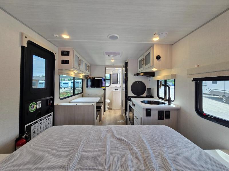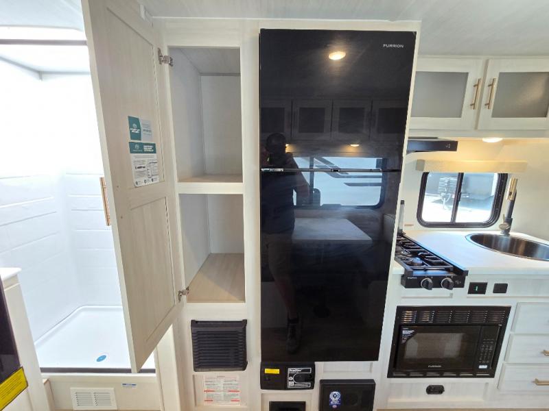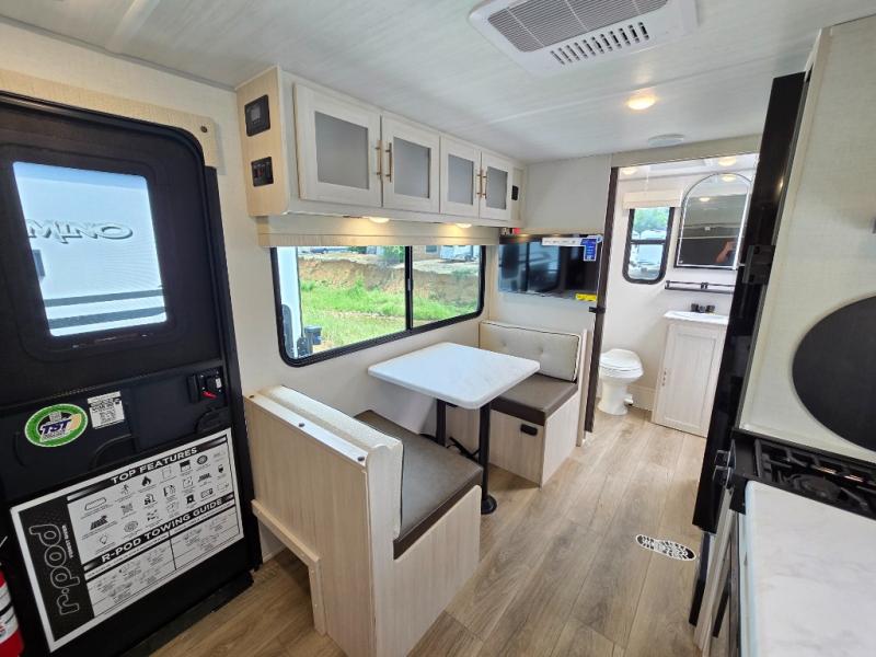 With any R-Pod travel trailer by Forest River, you will enjoy affordable luxury at the lowest tow weight in its class! There is a sealed underbelly with forced heat, a curved dual-pane acrylic front window with a bug screen and night shade, plus a large roof mounted solar panel for off-grid capabilities. The 15K A/C unit will keep you comfortable during the summer camping months, and the tankless water heater will provide endless hot showers after hiking, biking, swimming and more! Each model also includes a black glass friction hinge entrance door, roof ladder prep, exterior motion lighting, plus a hot and cold exterior spray port to wash off sand from the beach. Inside, you'll enjoy seamless Surf-X kitchen countertops, blackout roller shades, and a central vacuum system for hassle-free cleaning!