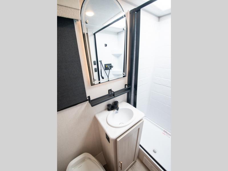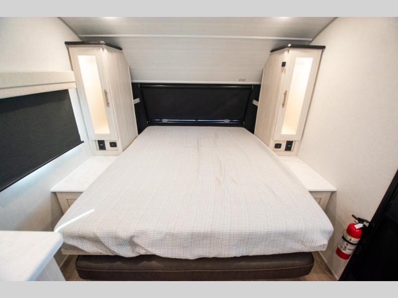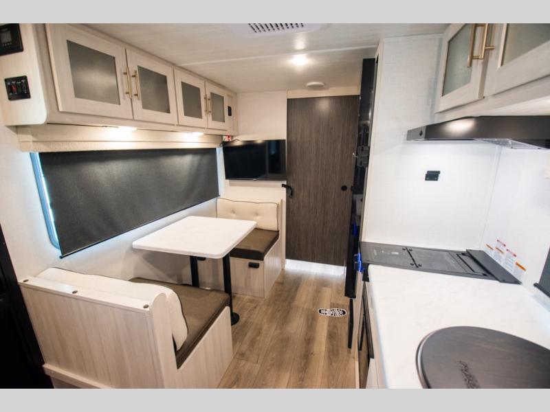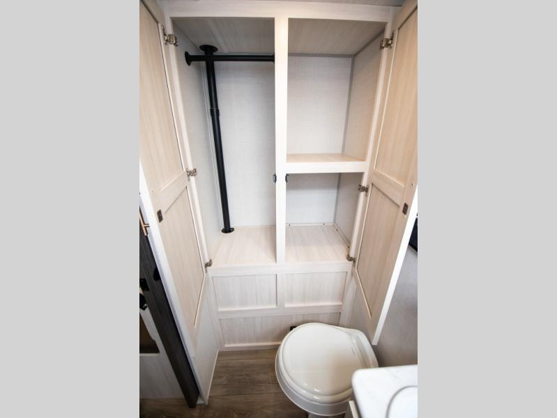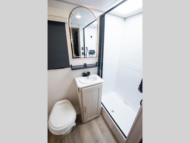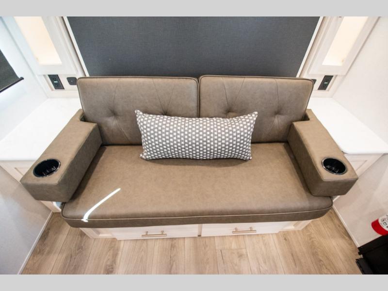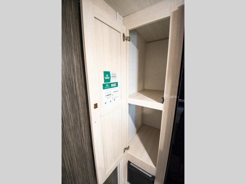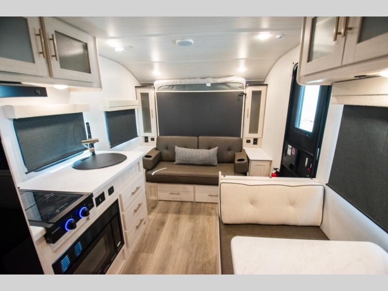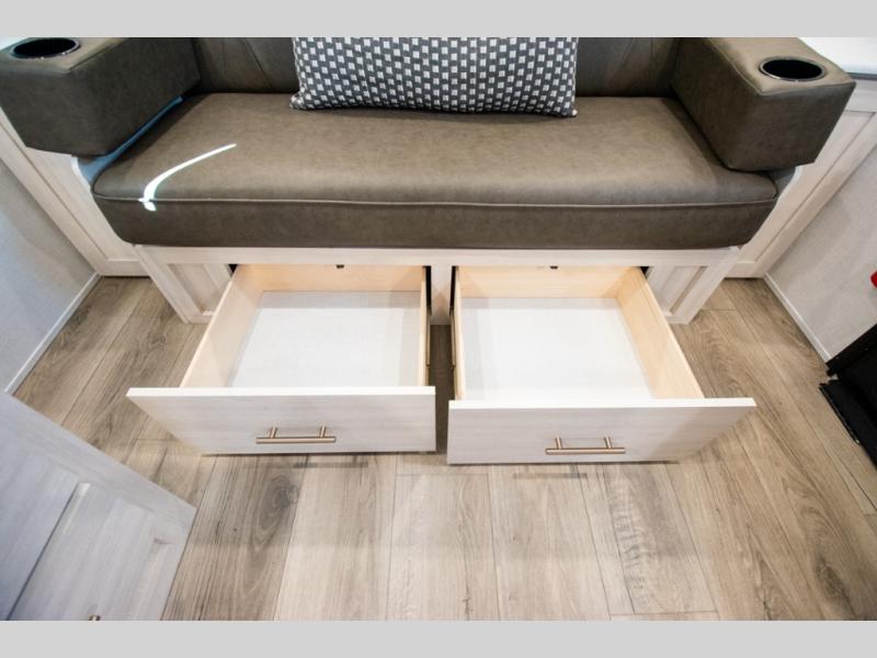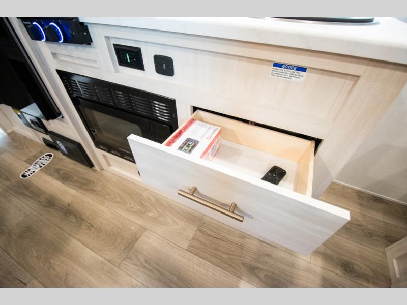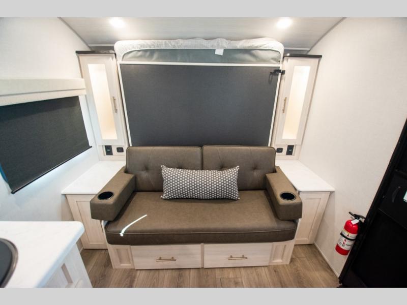 You're going to love all of the conveniences and versatility of this travel trailer! The front Murphy bed can fold away to reveal a sofa which gives you a comfortable place to sit during the day and to sleep at night too. The rear full bath features everything you will need to get squeaky clean each morning, as well as a large wardrobe for you to store your linens. After you have whipped up your best meal with the two-burner cooktop or convection microwave, you can head to the booth dinette and enjoy eating it there comfortably.