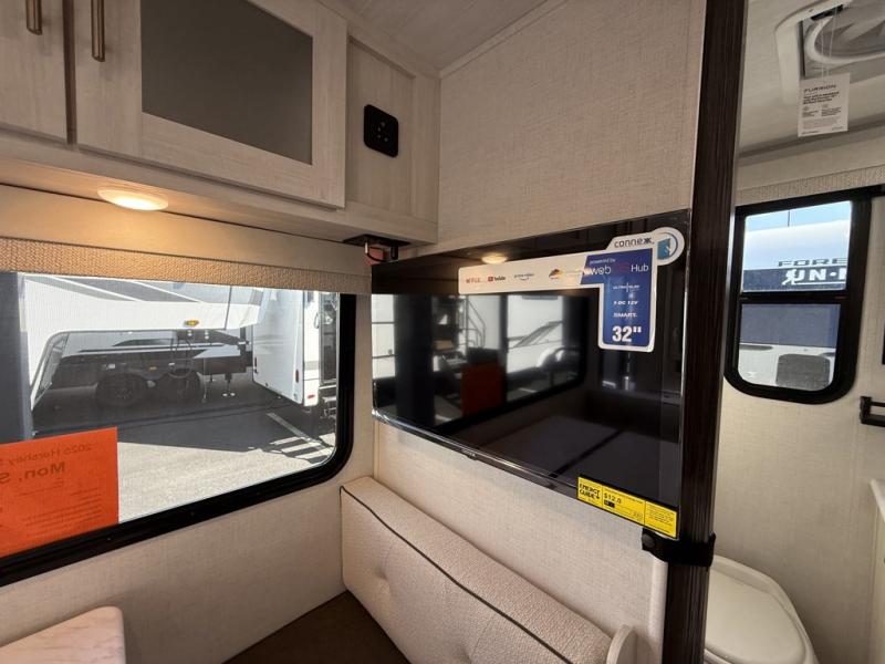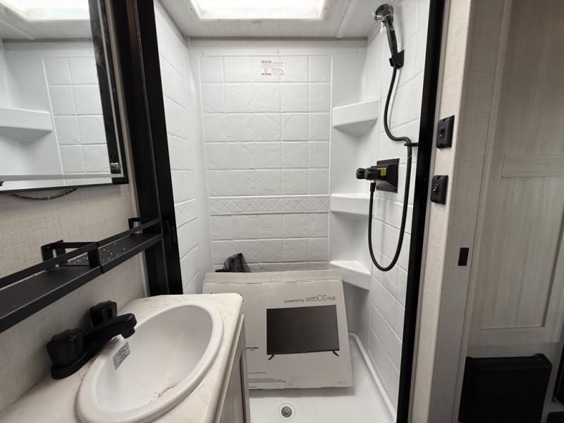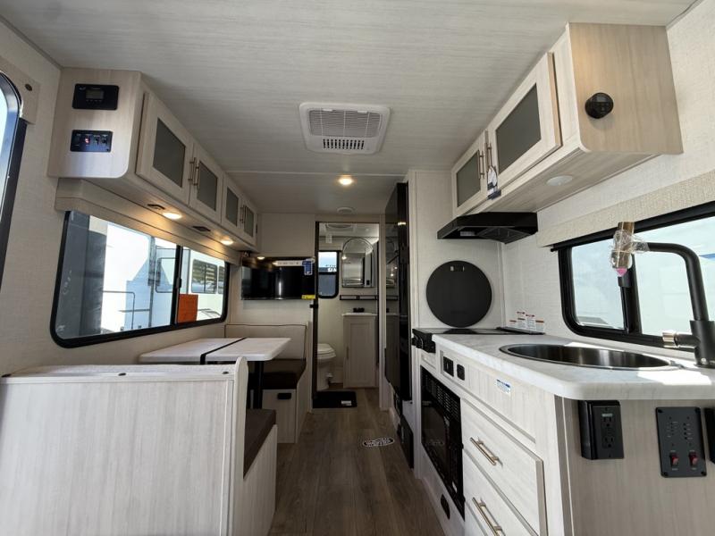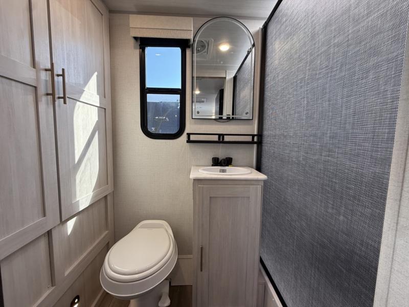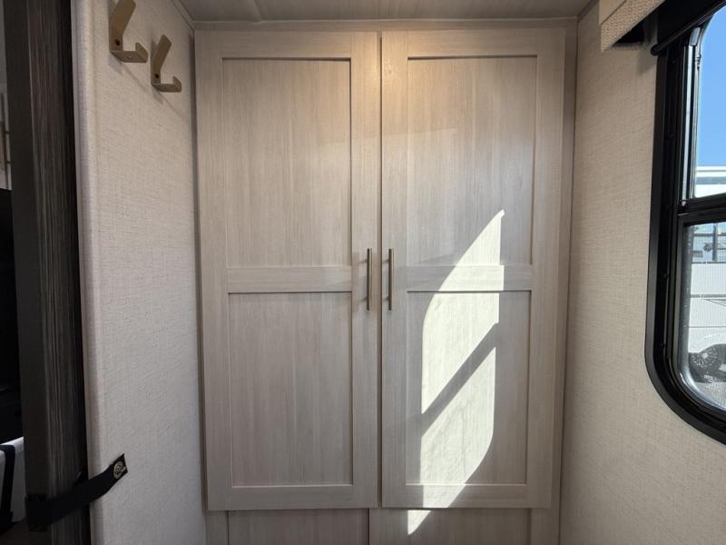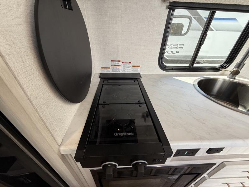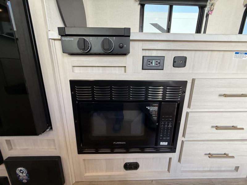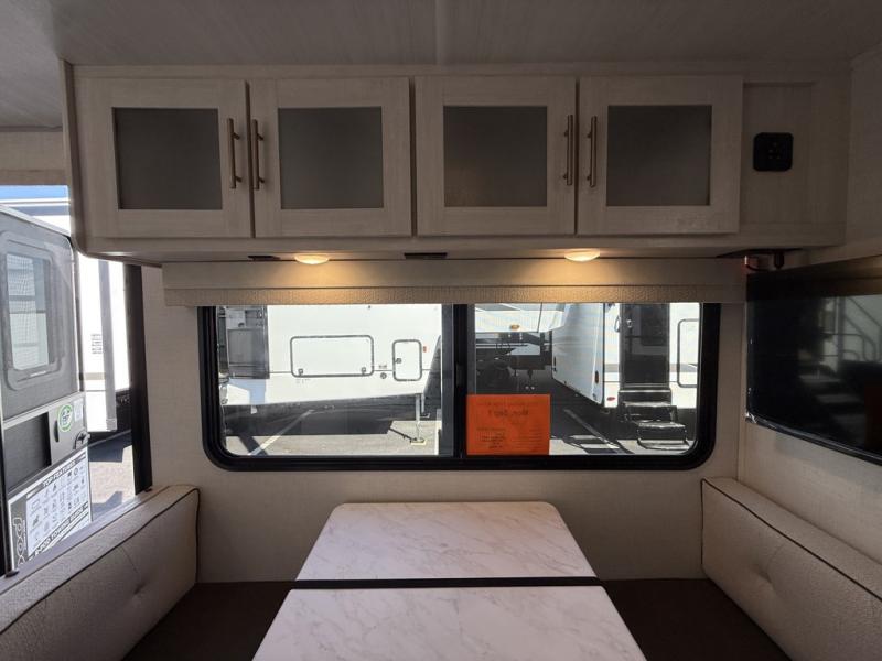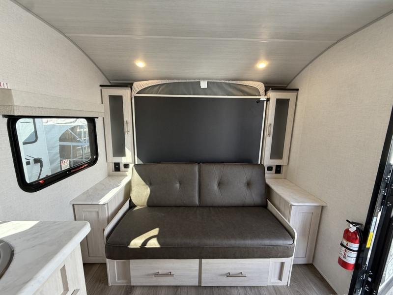 You're going to love all of the conveniences and versatility of this travel trailer! The front Murphy bed can fold away to reveal a sofa which gives you a comfortable place to sit during the day and to sleep at night too. The rear full bath features everything you will need to get squeaky clean each morning, as well as a large wardrobe for you to store your linens. After you have whipped up your best meal with the two-burner cooktop or convection microwave, you can head to the booth dinette and enjoy eating it there comfortably.