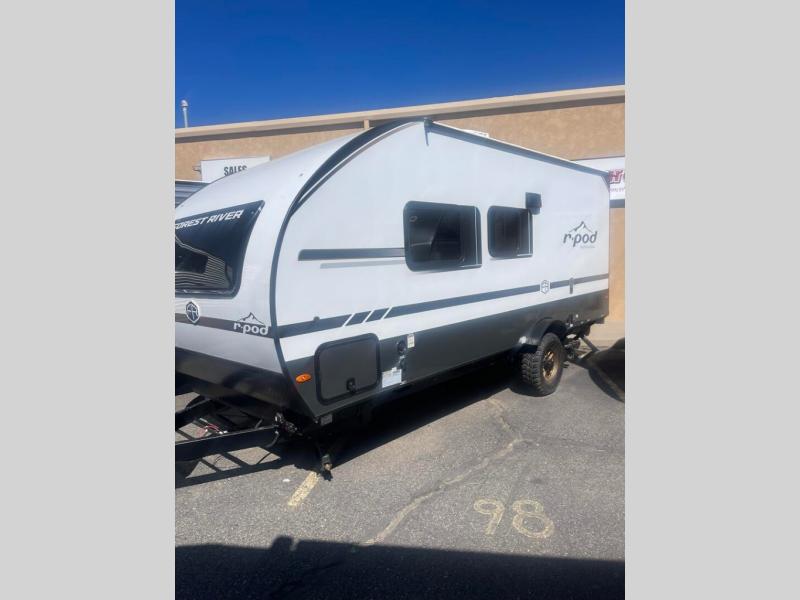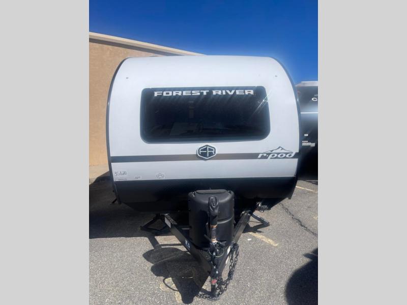 With any R-Pod travel trailer by Forest River, you will enjoy affordable luxury at the lowest tow weight in its class! There is a sealed underbelly with forced heat, a curved dual-pane acrylic front window with a bug screen and night shade, plus a large roof mounted solar panel for off-grid capabilities. The 15K A/C unit will keep you comfortable during the summer camping months, and the tankless water heater will provide endless hot showers after hiking, biking, swimming and more! Each model also includes a black glass friction hinge entrance door, roof ladder prep, exterior motion lighting, plus a hot and cold exterior spray port to wash off sand from the beach. Inside, you'll enjoy seamless Surf-X kitchen countertops, blackout roller shades, and a central vacuum system for hassle-free cleaning!