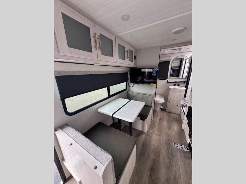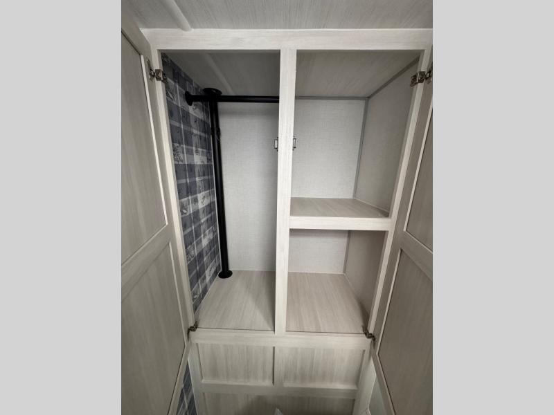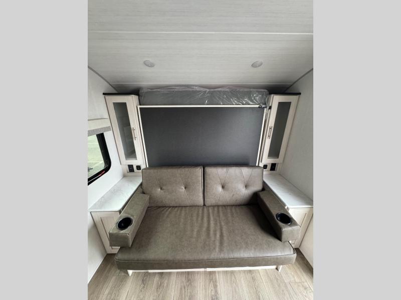 You're going to love all of the conveniences and versatility of this travel trailer! The front Murphy bed folds away to reveal the sofa which gives you a comfortable place to sit during the day and to sleep at night too. The rear full bath features everything you will need to get squeaky clean each morning as well as a large linen closet for clean towels. After you have whipped up your best meal with the two-burner cooktop, you can head to the booth dinette and enjoy eating it there comfortably. This model also includes the Hood River Edition that comes with Mud Legend all terrain tires with TPMS, a MaxxAir vent cover, and 12V tank heaters!