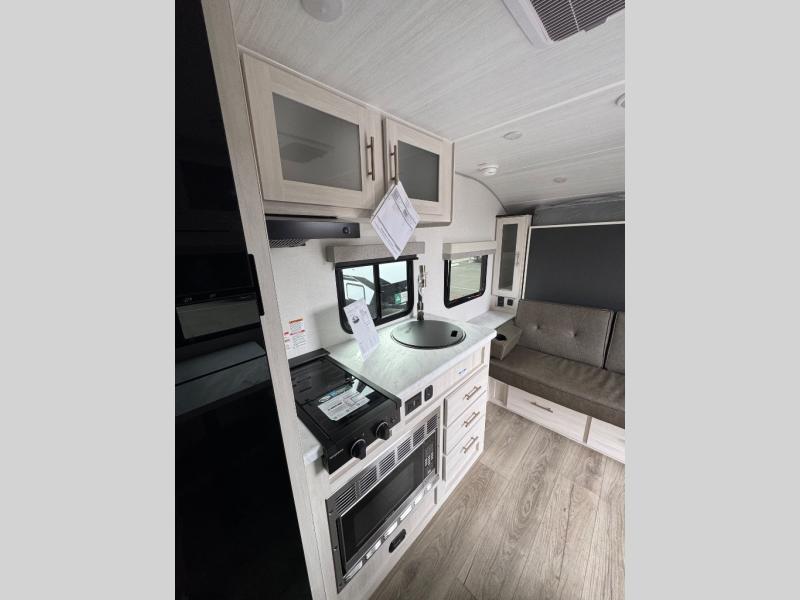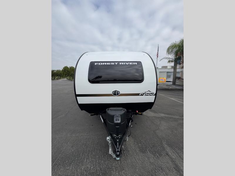 With any R-Pod travel trailer by Forest River, you will enjoy affordable luxury at the lowest tow weight in its class! There is a sealed underbelly with forced heat, a curved dual-pane acrylic front window with a bug screen and night shade, plus a large roof mounted solar panel for off-grid capabilities. The 15K A/C unit will keep you comfortable during the summer camping months, and the tankless water heater will provide endless hot showers after hiking, biking, swimming and more! Each model also includes a black glass friction hinge entrance door, roof ladder prep, exterior motion lighting, plus a hot and cold exterior spray port to wash off sand from the beach. Inside, you'll enjoy seamless Surf-X kitchen countertops, blackout roller shades, and a central vacuum system for hassle-free cleaning!