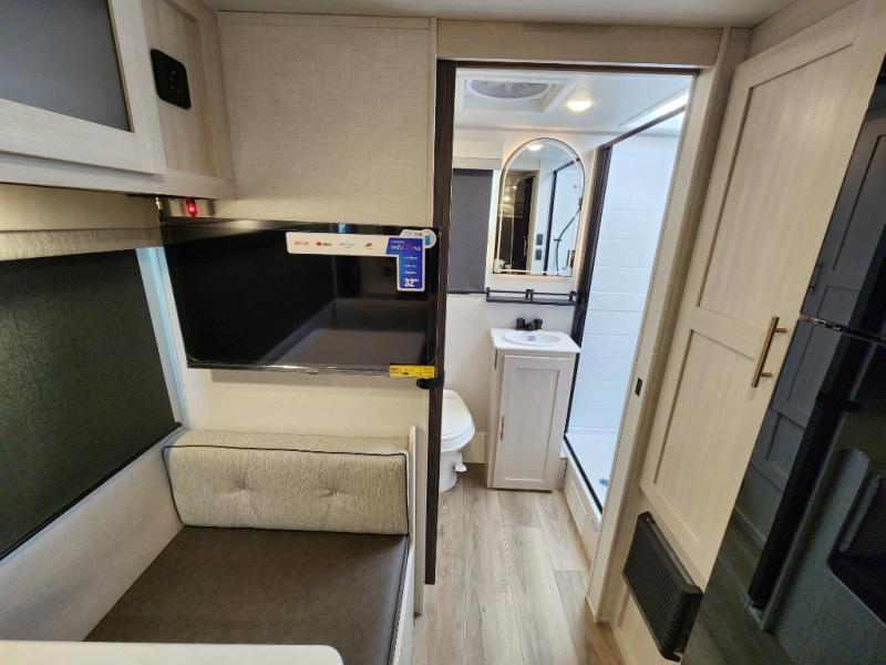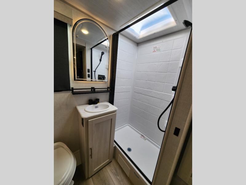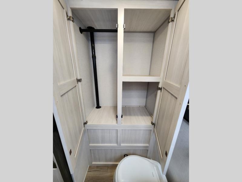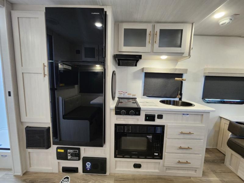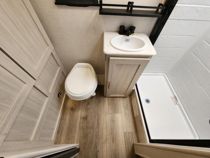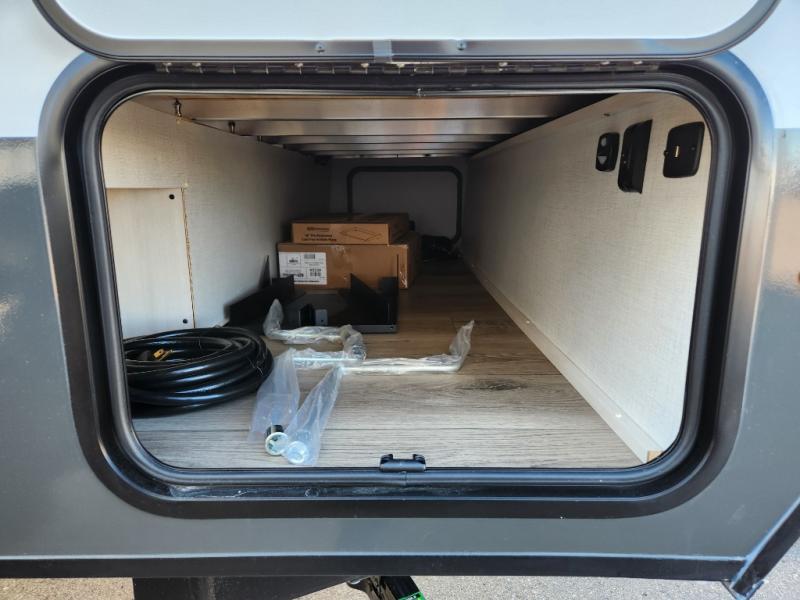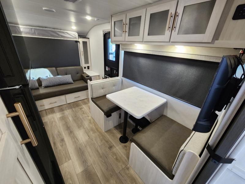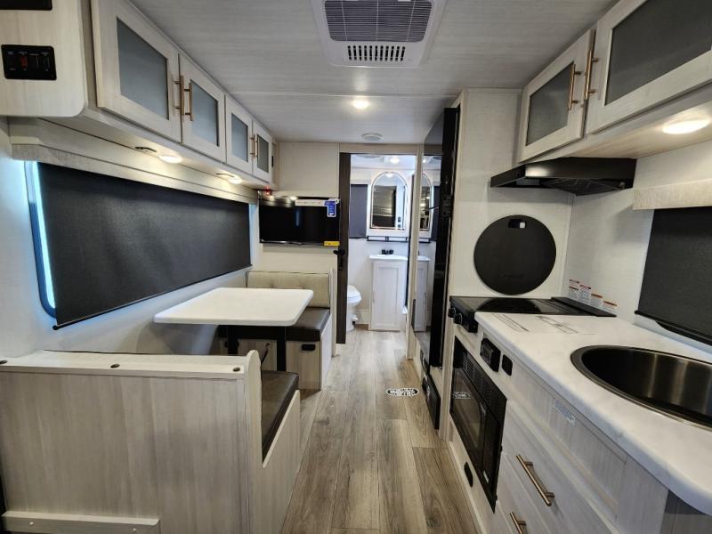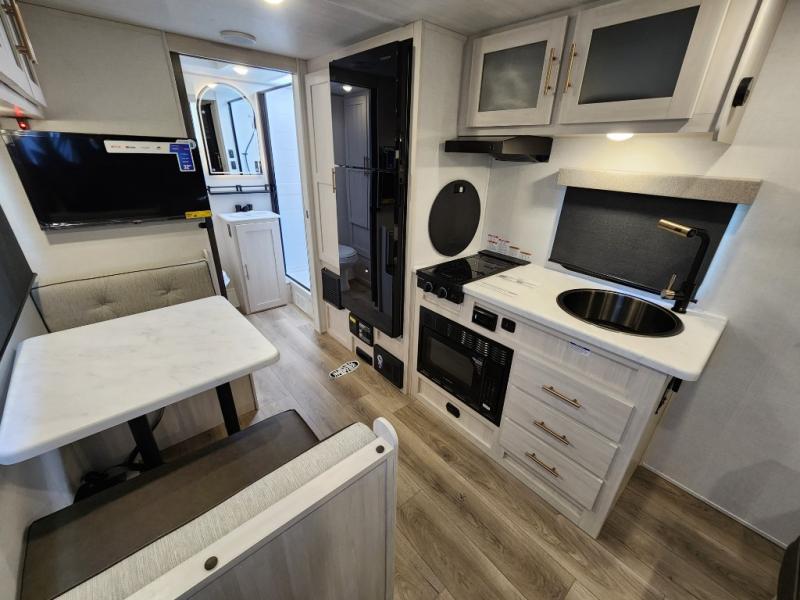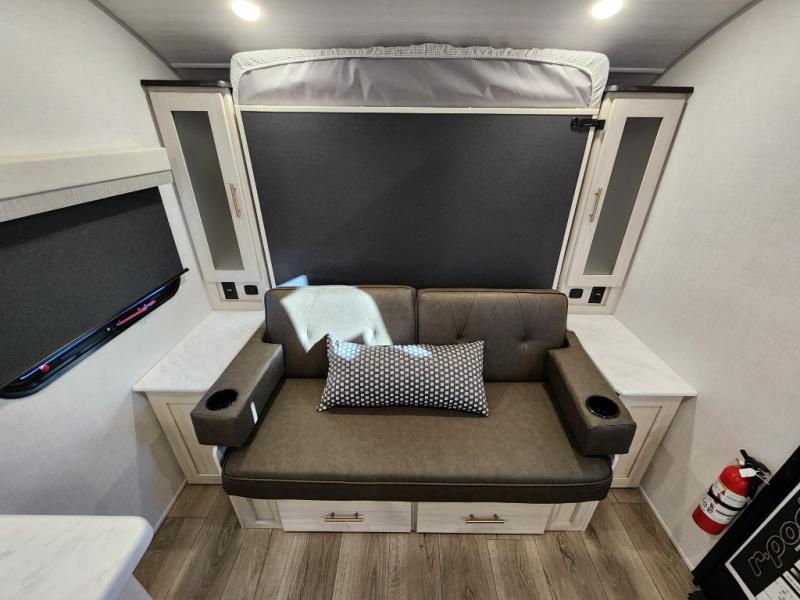 You're going to love all of the conveniences and versatility of this travel trailer! The front Murphy bed can fold away to reveal a sofa which gives you a comfortable place to sit during the day and to sleep at night too. The rear full bath features everything you will need to get squeaky clean each morning, as well as a large wardrobe for you to store your linens. After you have whipped up your best meal with the two-burner cooktop or convection microwave, you can head to the booth dinette and enjoy eating it there comfortably.