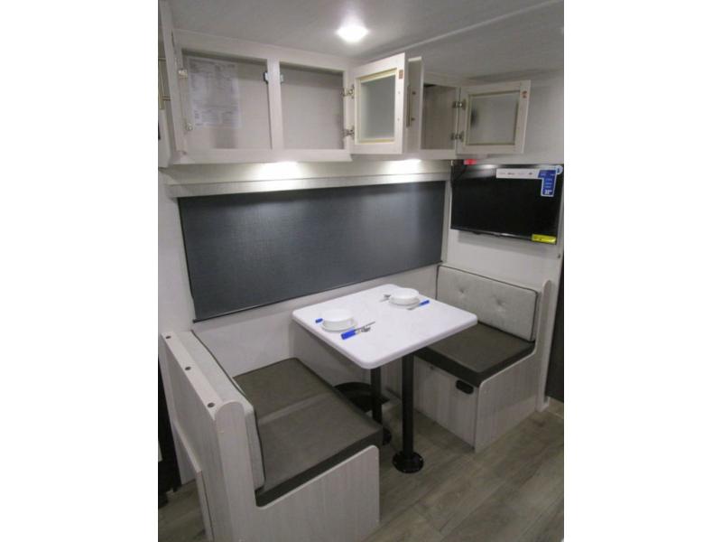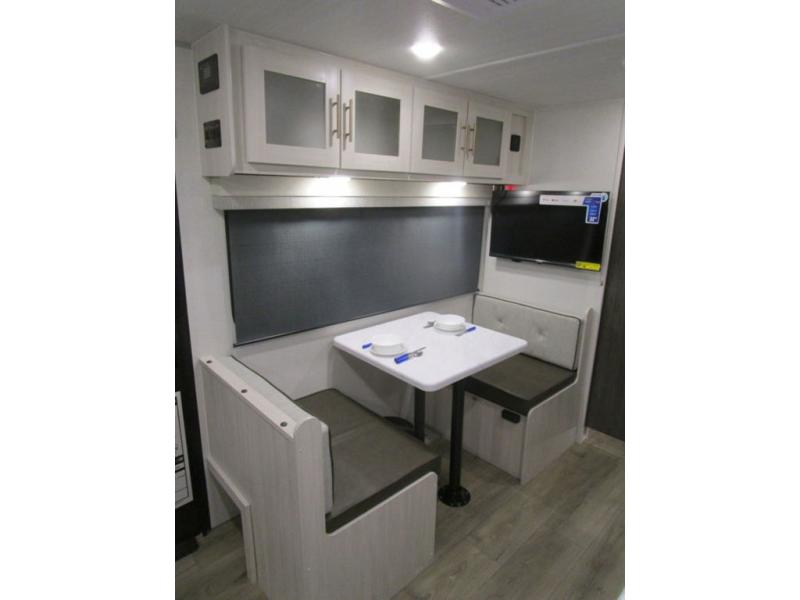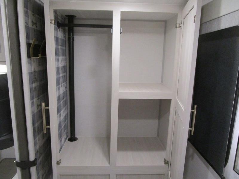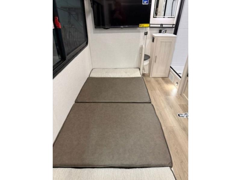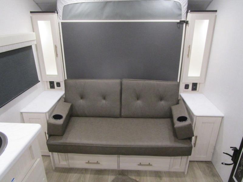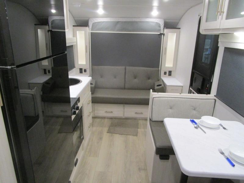 You're going to love all of the conveniences and versatility of this travel trailer! The front Murphy bed folds away to reveal the sofa which gives you a comfortable place to sit during the day and to sleep at night too. The rear full bath features everything you will need to get squeaky clean each morning as well as a large linen closet for clean towels. After you have whipped up your best meal with the two-burner cooktop, you can head to the booth dinette and enjoy eating it there comfortably. This model also includes the Hood River Edition that comes with Mud Legend all terrain tires with TPMS, a MaxxAir vent cover, and 12V tank heaters!